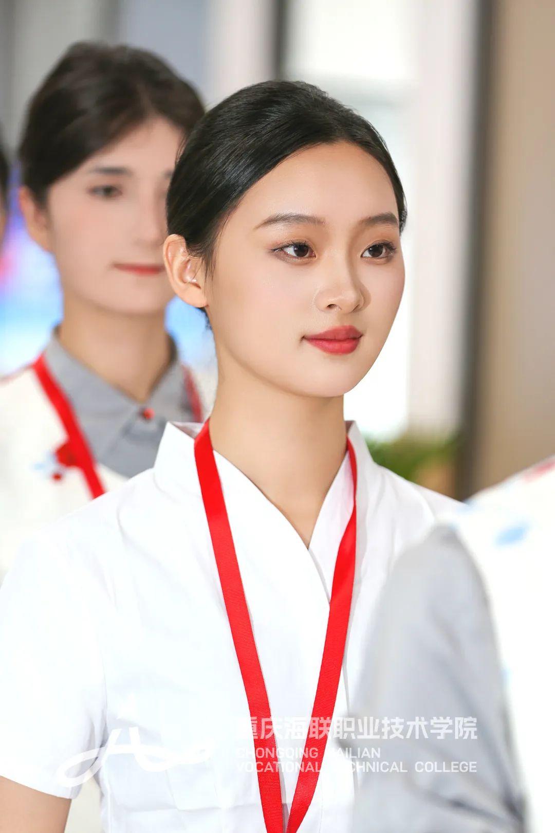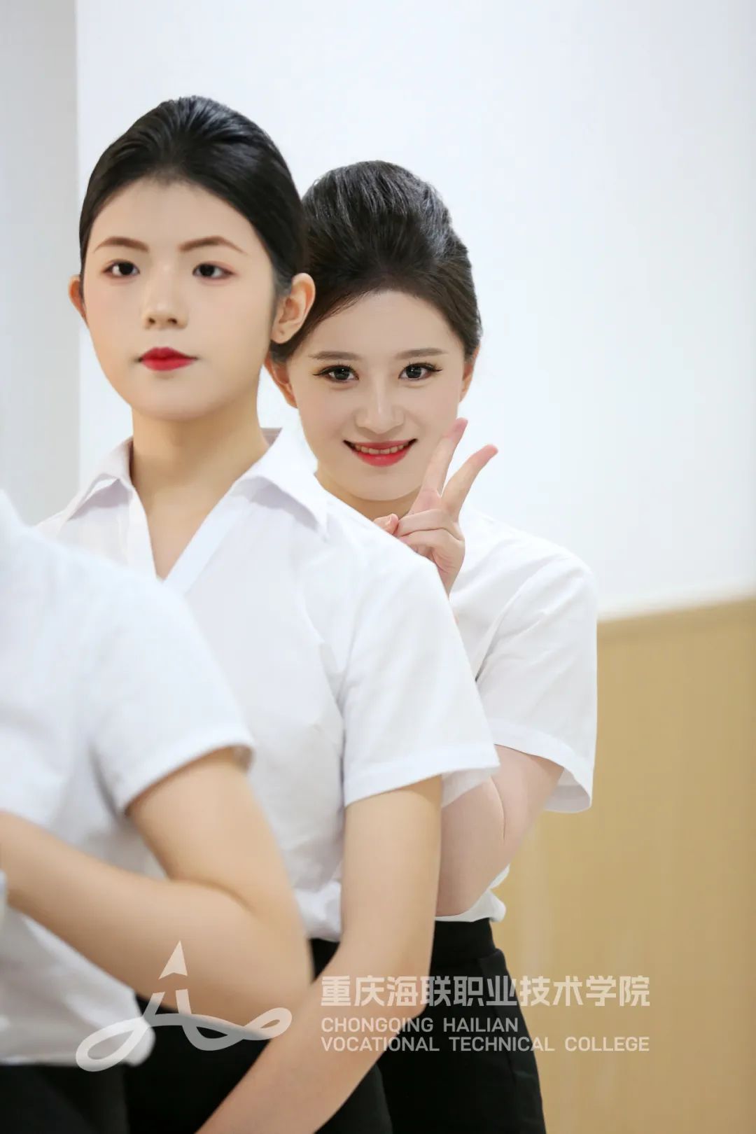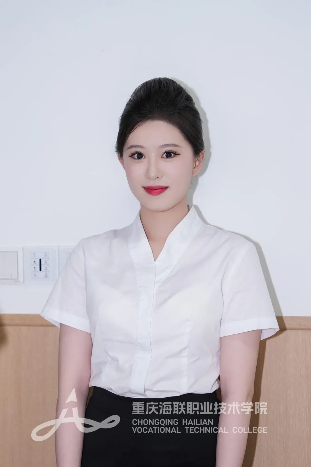 海联学子得体的职业仪态、满溢自信的眼神、展现亲和力的微笑,无一不显露着对万尺蓝天的执着。