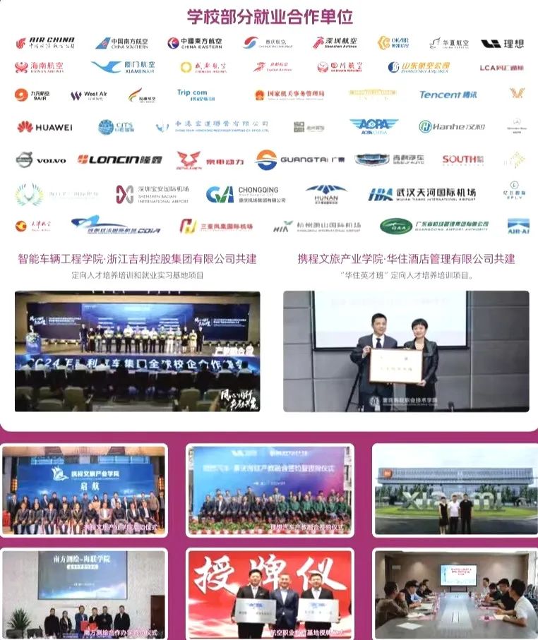 一直以来,学校高度重视就业工作,多措并举促进高质量充分就业。与国内多家航空公司、民航机场,以及世界500强企业建立稳定合作关系。高品质就业服务,为青春梦想保驾护航。