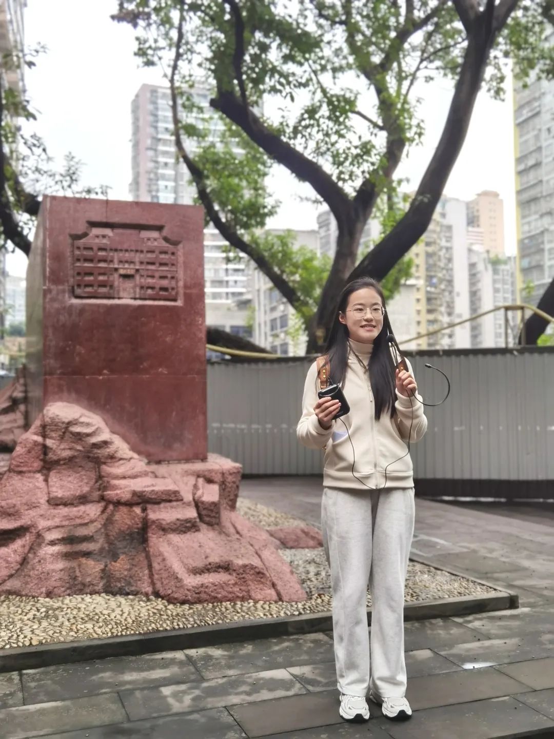 他们实训足迹遍布多个具有深厚历史底蕴与文化特色的地点,线路从繁华的解放碑商业区起始,途径典雅的国泰剧院,再到被誉为“云端之眼”的城市高空观景台,随后探访九三学社成立旧址纪念碑,感受历史的厚重,接着漫步至历史悠久的太平门,最后抵达充满山城气息的白象居。