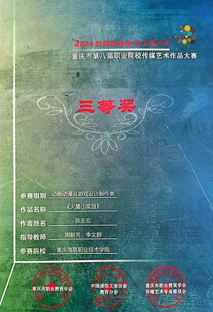 虚拟2311班要佳豪同学的参赛作品《沉睡千年》《尽头》,虚拟2411班陈志宏同学的参赛作品《火星小菜园》获三等奖。