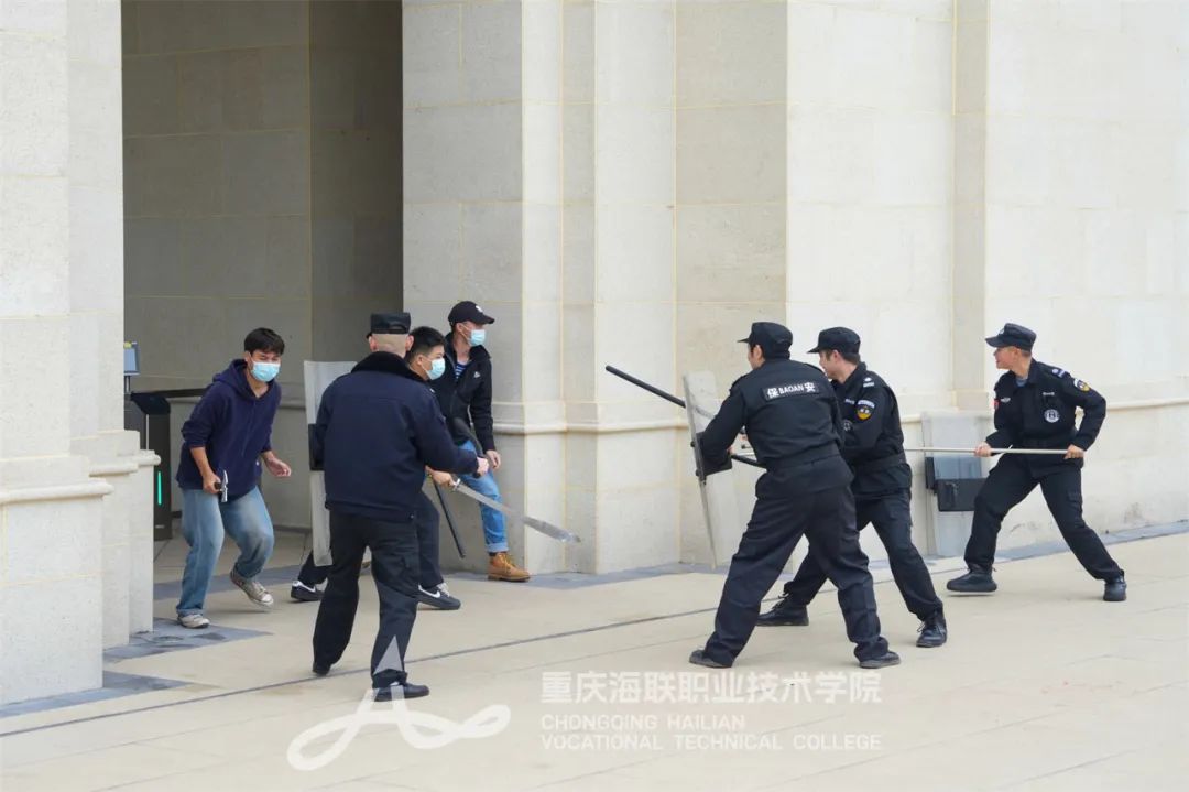 为切实加强校园安全管理,提高师生应对突发暴力事件的能力,确保校园安全稳定,11月22日,学校于在启航大门处组织开展了一场关于“刀斧砍杀恐怖袭击”的反恐防暴应急演练。学校校长温良、党委书记郭增琦、副校长陈飞、渝北区公安分局和龙兴派出所相关领导共同出席此次活动。
