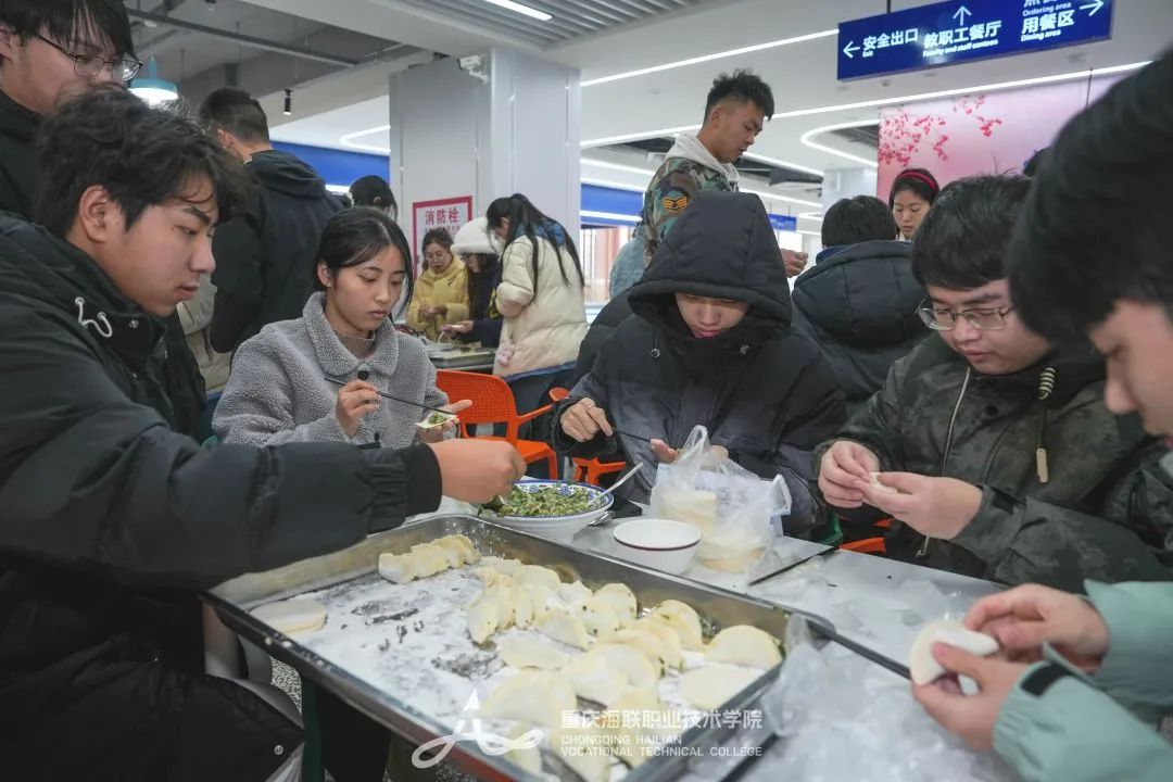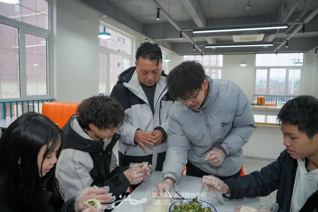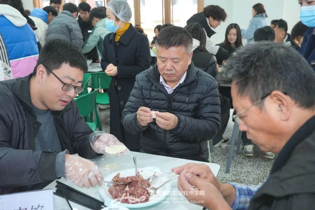 耐心地向同学们讲解包饺子的经验与技巧擀皮、放馅、对折、捏紧