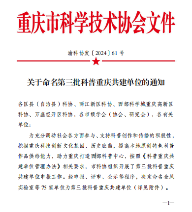 12月17日,重庆市科协官网发布公告,经过学校申报、市科协组织专家评审、公示等程序,买球官网等75家单位被重庆市科协命名为第三批科普重庆共建单位。