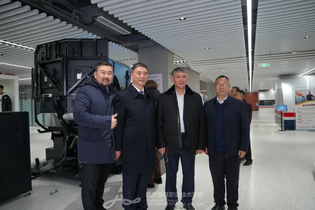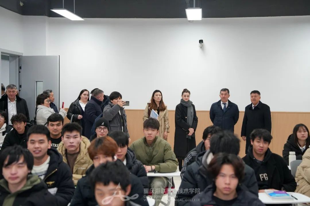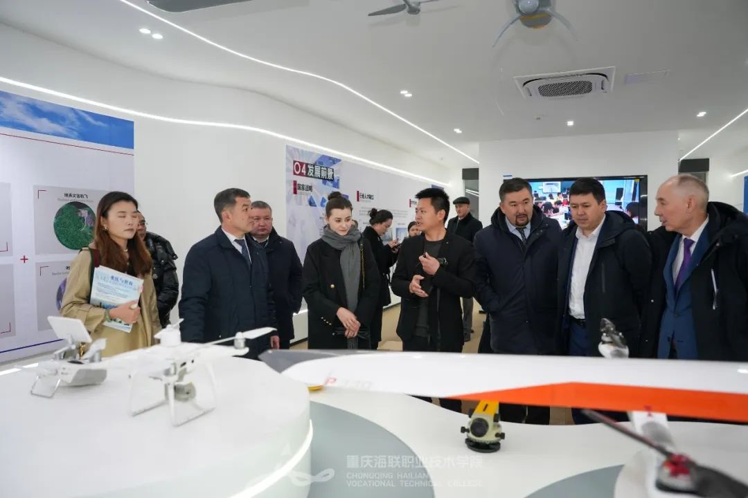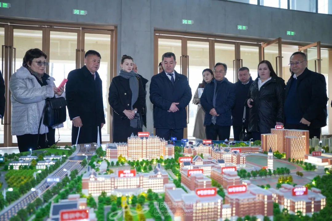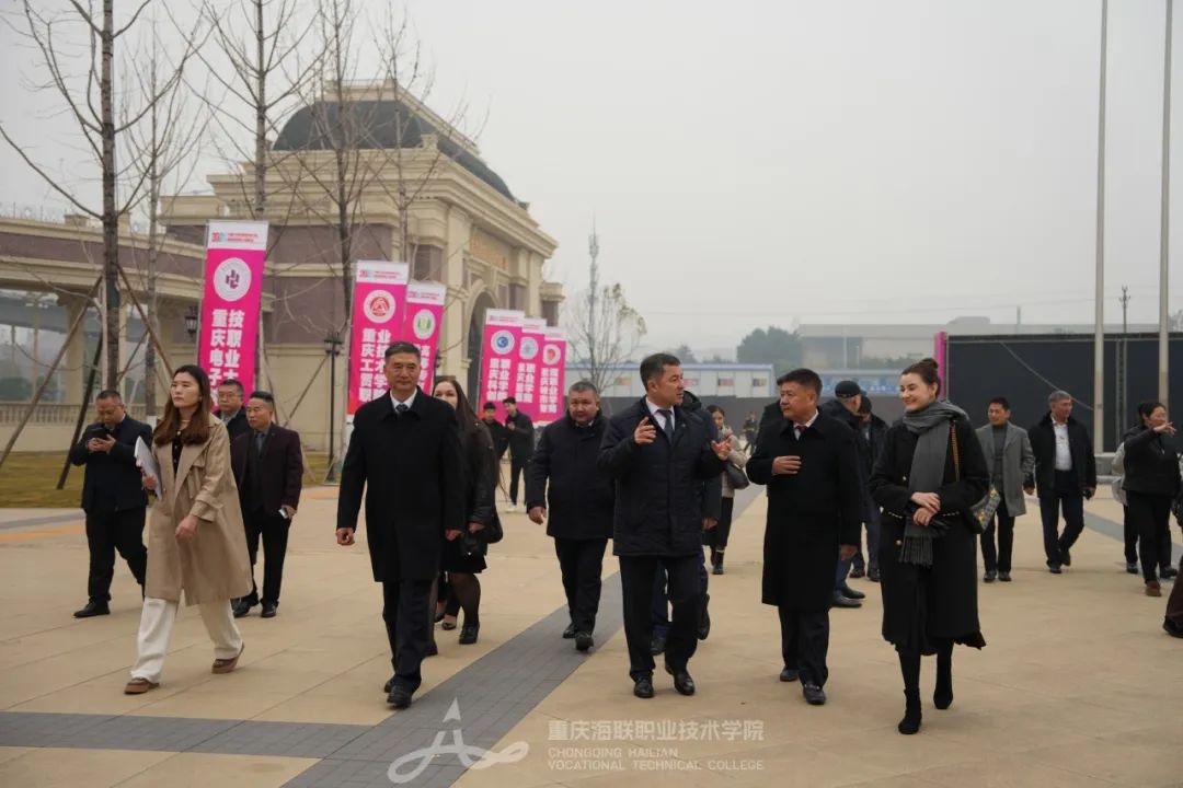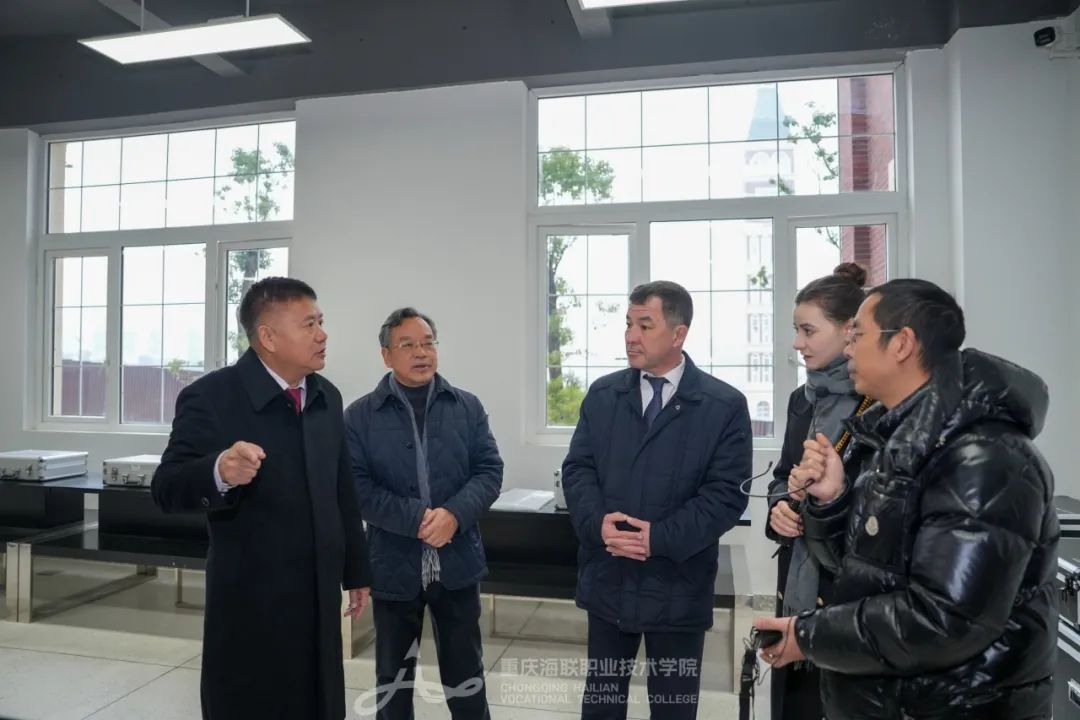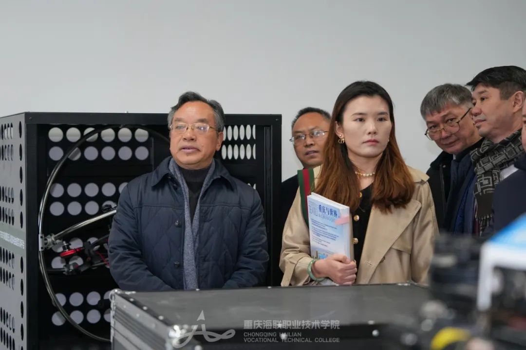 重庆市教委原二级巡视员、上海合作组织国家多功能经贸平台教育工作联盟特派代表、重庆市教育国际交流协会监事长胡斌,平台副秘书长、教育工作联盟特派代表张光福,平台教育工作联盟常务秘书长、教育服务工作委员会秘书长毛德林等陪同考察。学校校长温良、常务副校长李慧民等热情接待。