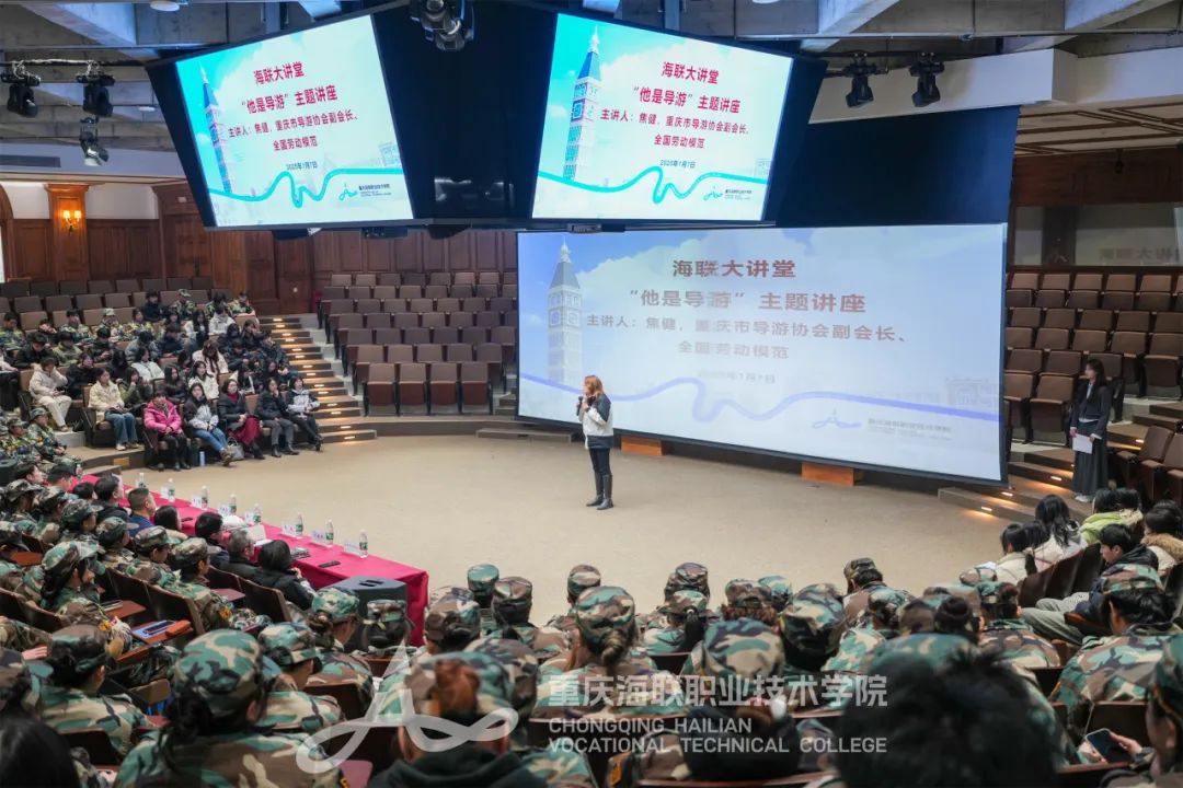 1月8日,重庆导游协会副会长兼秘书长焦健莅临买球官网,为学校旅游类专业师生举办了一场生动有趣且内涵丰富的专题讲座。学校副校长方晓东、重庆市高等教育学会普通高校招生专委会副秘书长毛锐、校企合作处处长郭曦、培训与继续教育学院院长丁雄伟等出席讲座。