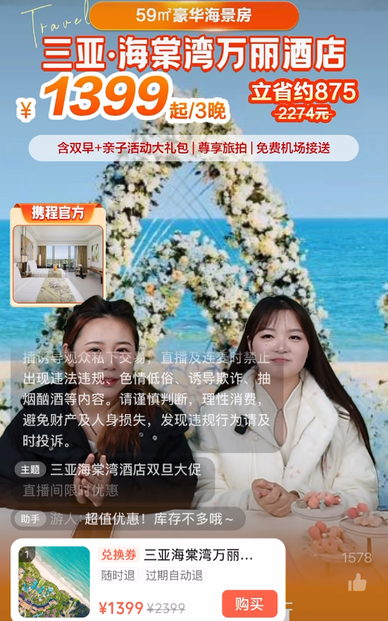 为培养一批既懂旅游又擅直播的数字文旅专业人才,携程联合院校合作伙伴启动“直播青训营”计划,旨在全国共建100个文旅直播间、开展1000场真锤实炼直播、培育10000名文旅主播,为旅游行业的数字化转型和创新发展提供人才储备。