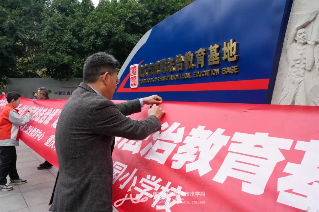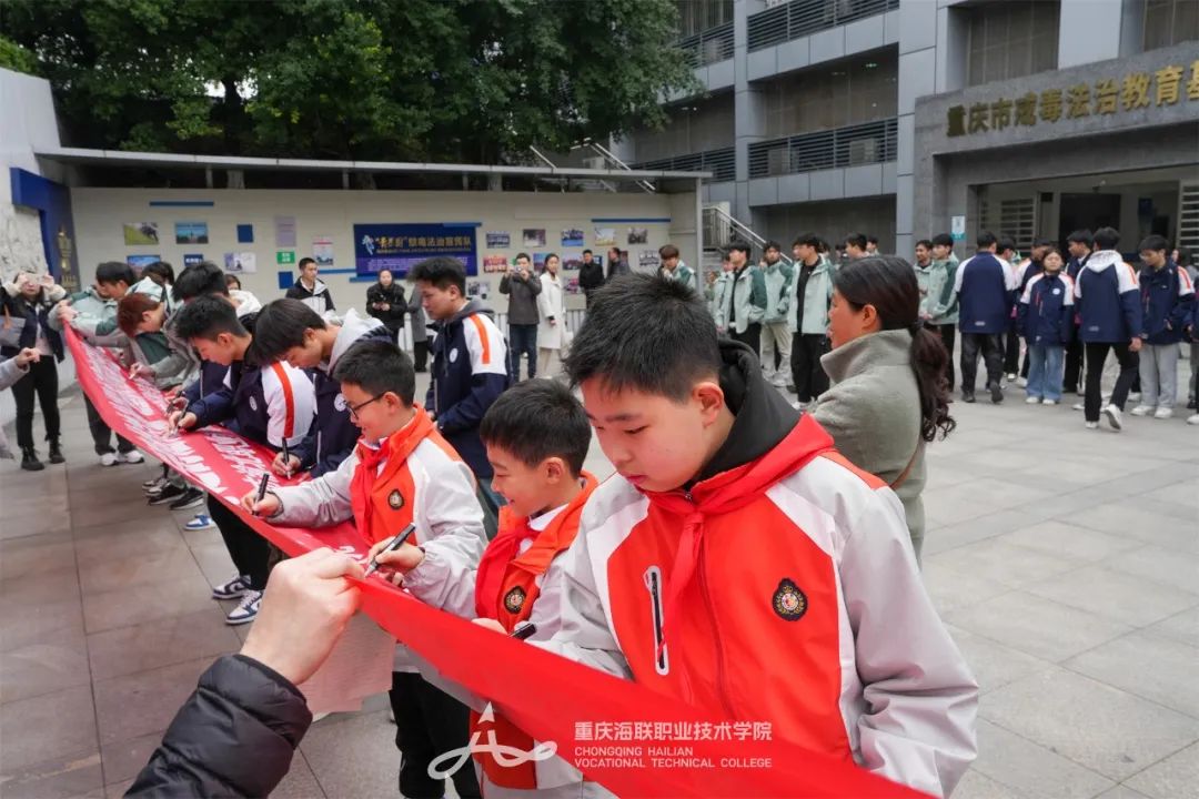 随后,参观的同学们在禁毒民警的带领下进行了倡议签名与集体宣誓,“从现在起,从我做起,抵制毒品,参加禁毒。珍爱生命,远离毒品。”同学们踊跃参与,纷纷表示在今后的生活中将敬畏法律、遵守法律,珍爱生命,自觉抵制毒品诱惑,争做知法、懂法、守法的新时代公民。
