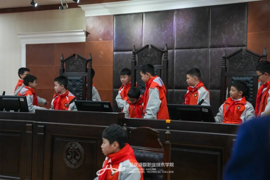 随后,师生们来到西南政法大学校史馆和模拟法庭。在讲解员的带领下,了解到学校的法学教育发展历程和中国法治进程。