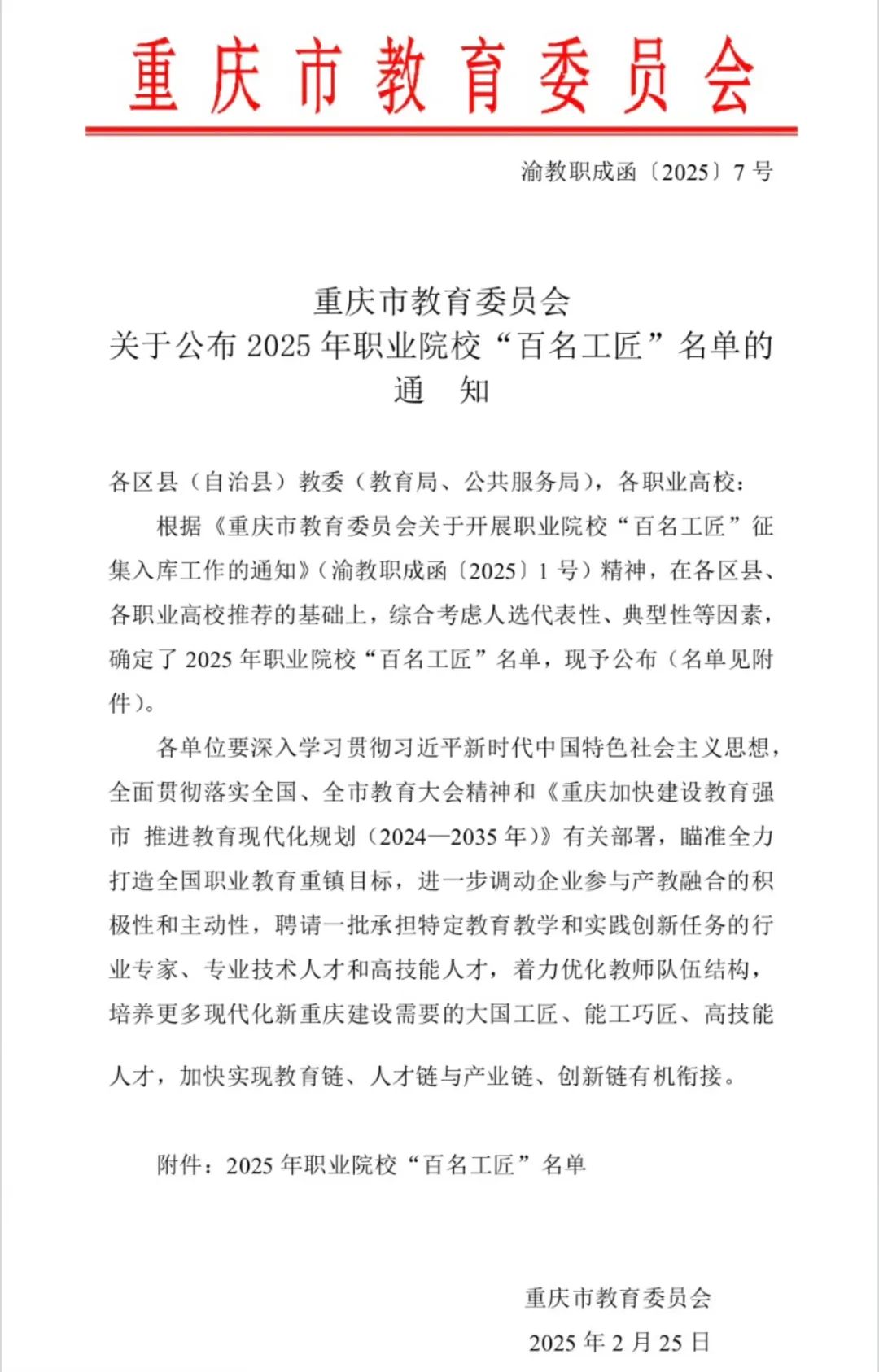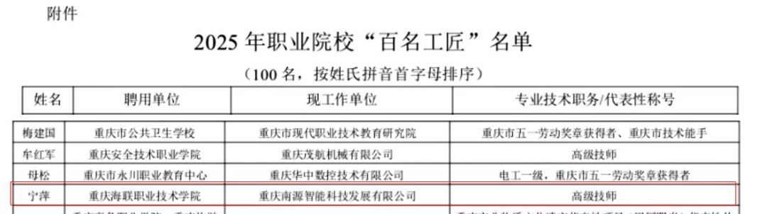 2025年2月,入选重庆职业院校“百名工匠”。