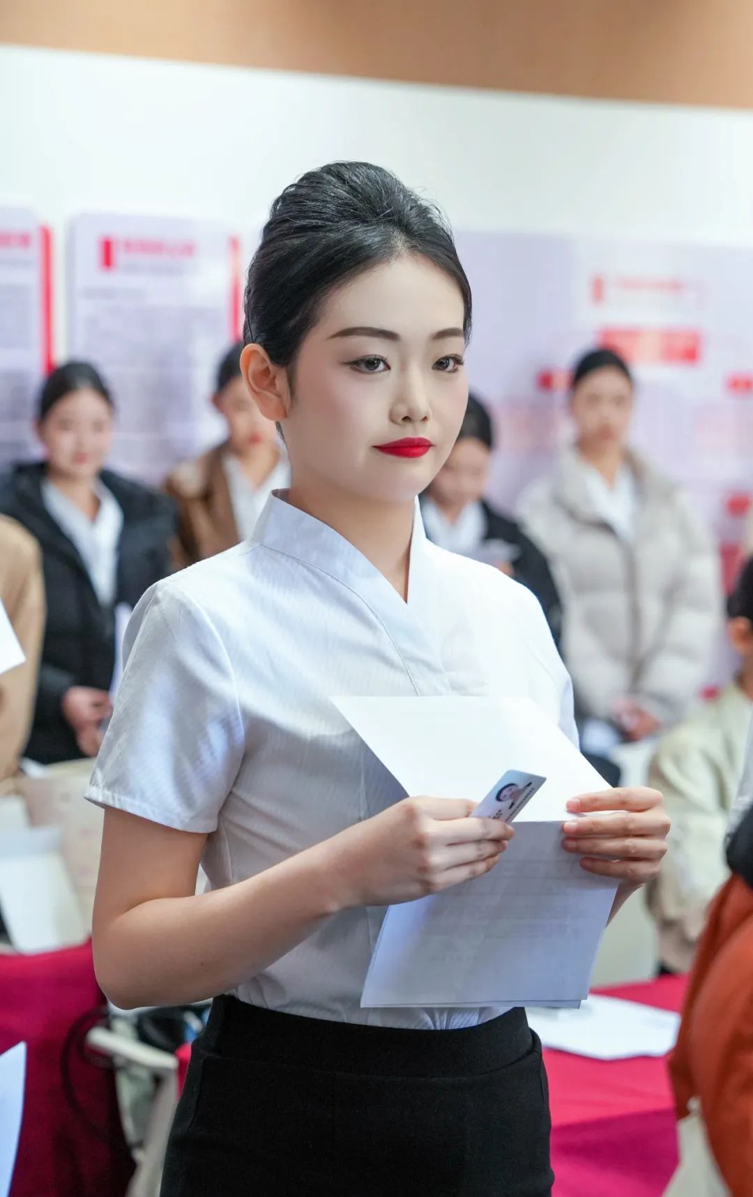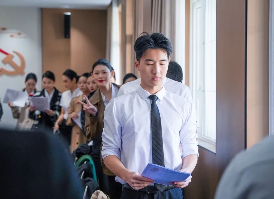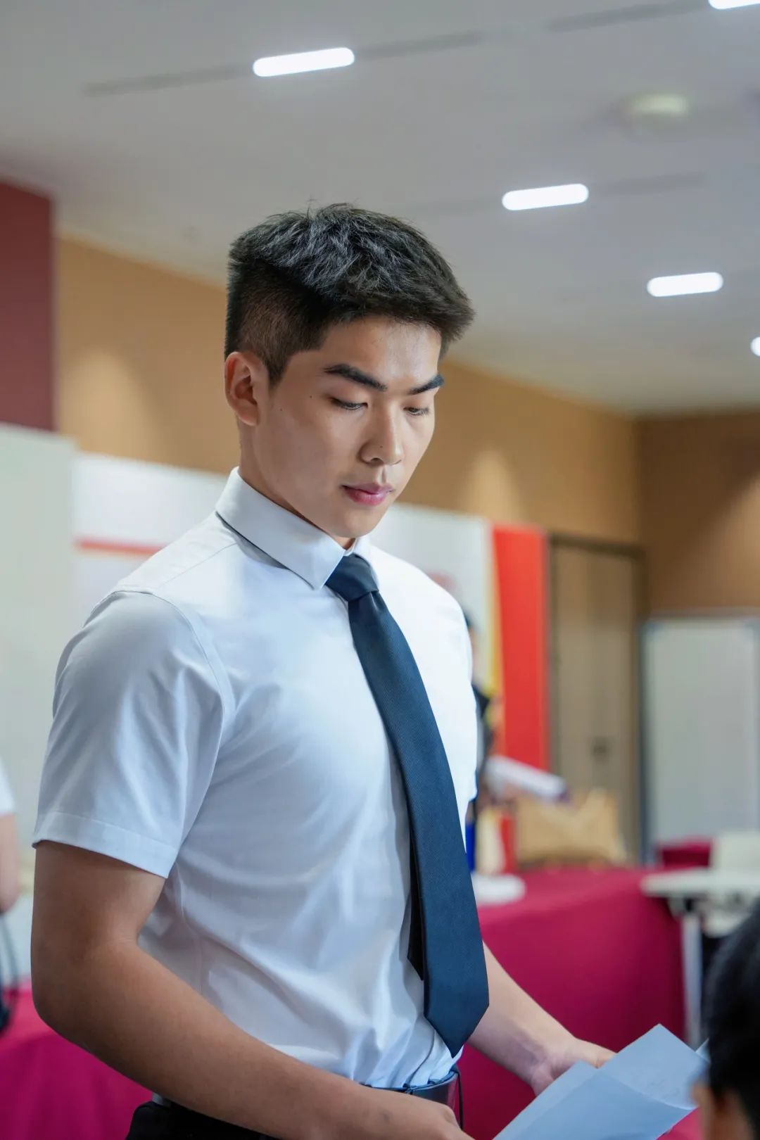 同学们一身标准职业装,按照面试要求,安静并有秩序地等候入场。挺拔的仪态、自信的眼神、浅浅的微笑,展现出良好的精神面貌。