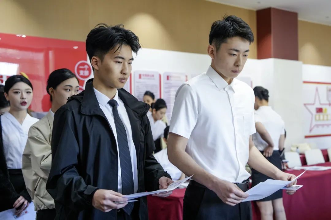 精心准备的简历、精致的妆容、亲和的微笑,挺拔的身姿,在三月清晨的校园里,他们与春天一样,蕴含着生机勃勃,散发着青春力量。同学们自信地排队等候,脸上洋溢着青春的活力与热情,以及对蓝天梦的向往。