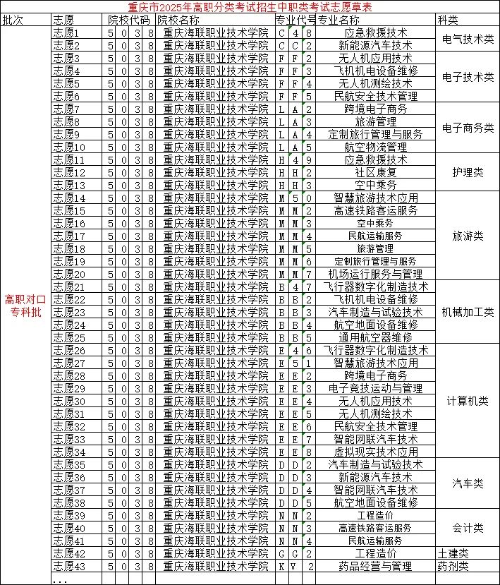 学校现有1个重庆市职业教育现代产业学院,1个专本贯通专业,1个重庆市骨干专业,2个重庆市专业教学资源库。学校是重庆市首批举办的高职院校,2022年,5A社会组织昭信教育研究院全面打造新海联学院。2024年9月,学校已搬迁至位于中国内陆首个国家级开发新区——两江新区·龙兴新城的新校区。学校将依托航空航天战略新兴产业基地资源和协同创新区的“政产学研用一体化”优势,培养高素质技术技能人才,努力建设成为重庆市高水平航空职业院校。