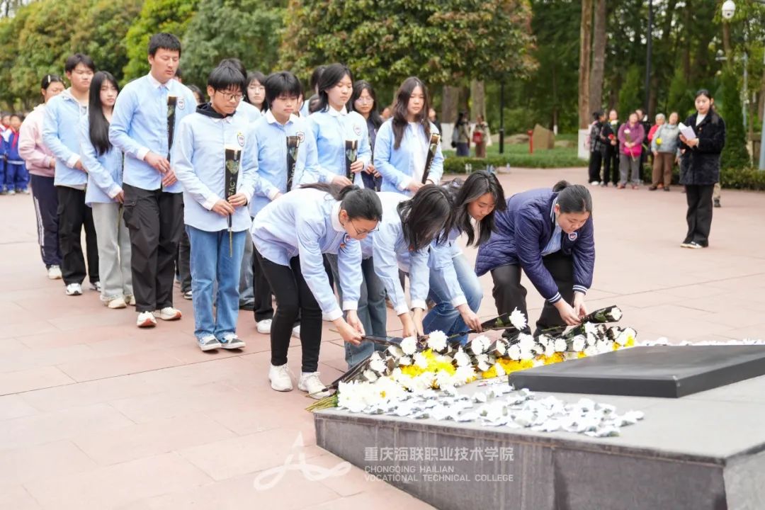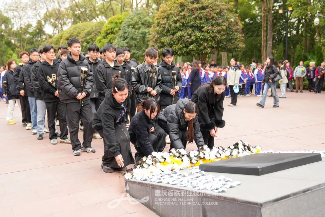 最后,师生们怀着崇敬的心情,向烈士纪念碑敬献白菊,并深深鞠躬致敬。洁白的花朵寄托着无尽的哀思,也象征着先烈们的高尚品质和不朽精神将永远激励后人。