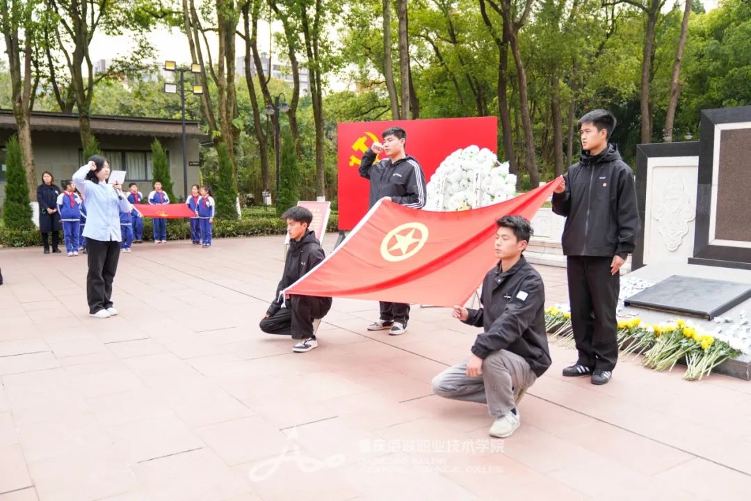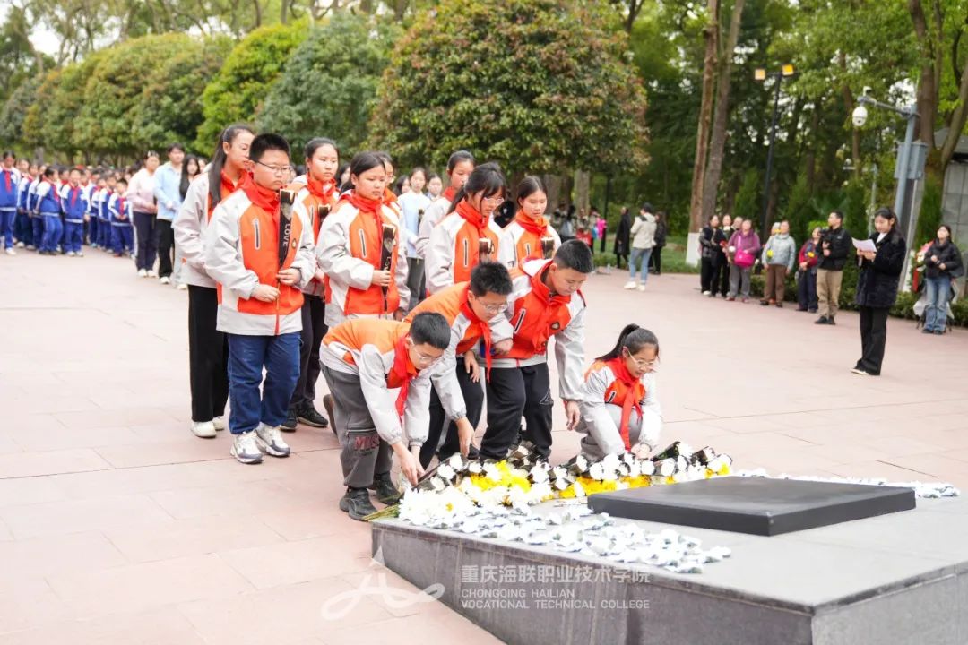 为深切缅怀革命先烈、弘扬英烈精神,引导学生传承红色基因、厚植家国情怀,4月1日下午,买球官方网站携手重庆市育仁中学校和重庆市渝北区和合家园小学校师生100余人走进歌乐山烈士陵园和歌乐革命纪念馆,开展大中小学思政教育一体化“缅怀革命先烈 传承红色基因”清明祭扫活动。