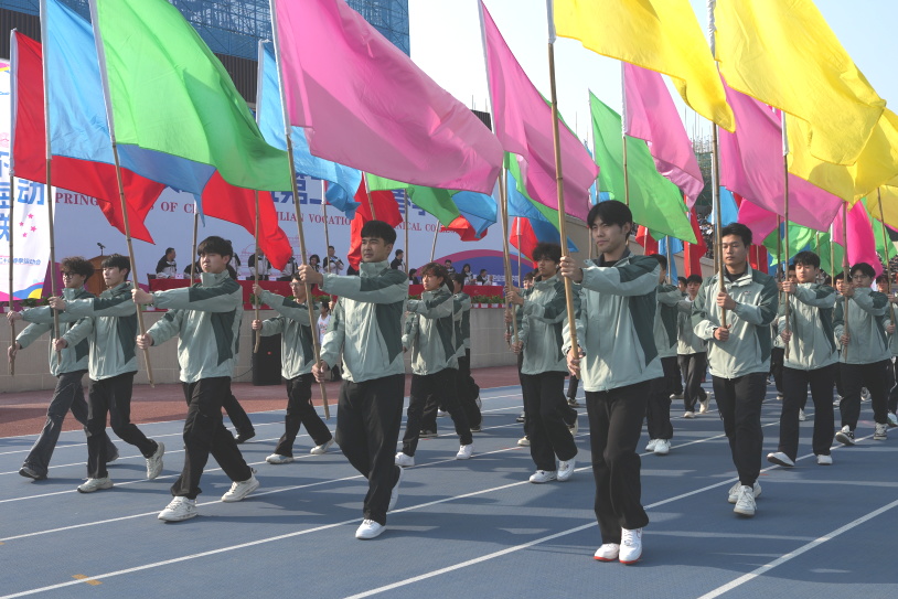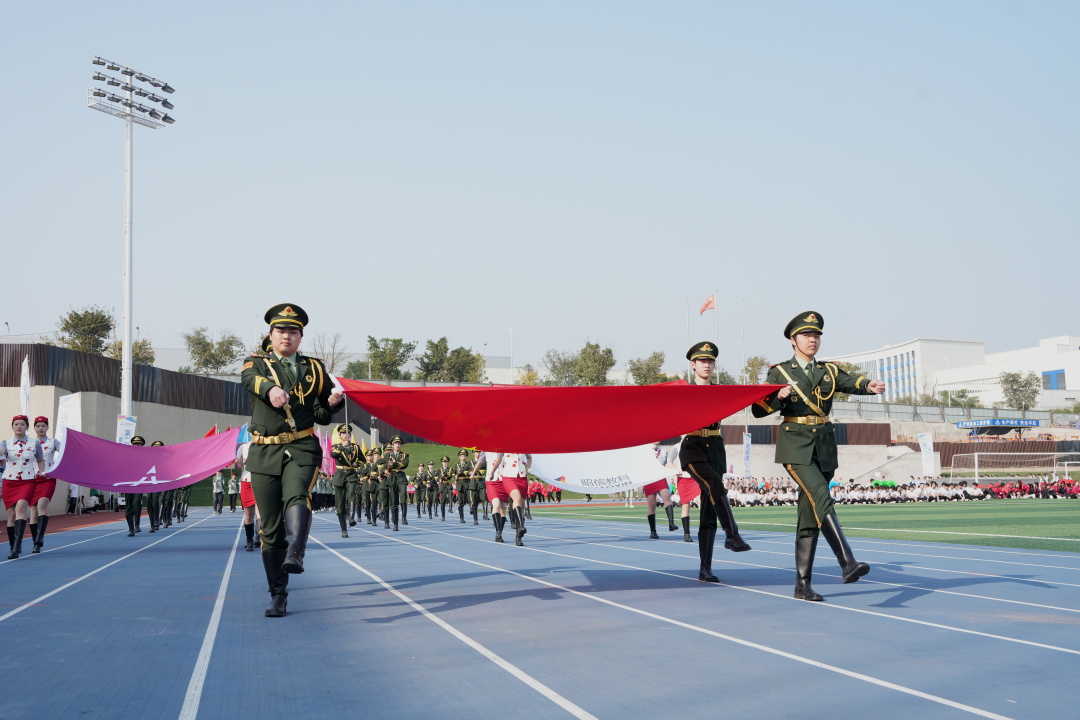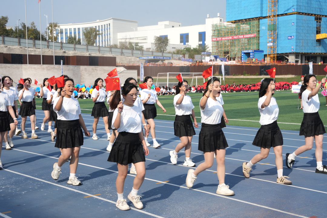 国旗校旗队、彩旗队、各学院专业方队等
