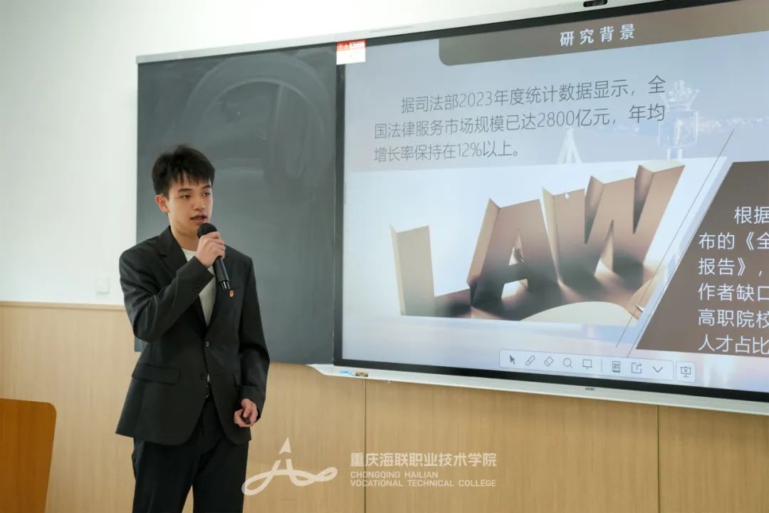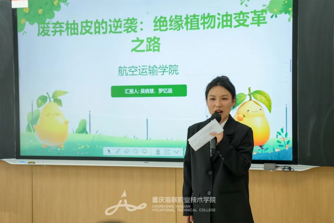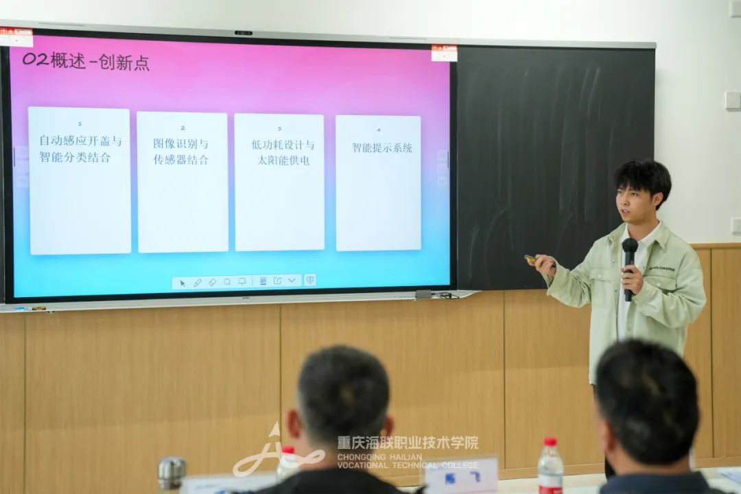 校级决赛采用“成果汇报+自由答辩”的形式。在展示环节,选手们通过PPT演示、视频展播,详细阐述了项目背景、研究思路、应用价值、创新特色、发展前景。答辩环节,面对评委的专业提问,参赛选手们镇定自若,对项目的创新点、可行性、市场前景等进行深入阐述。团队成员间默契配合,补充完善,思维的火花在一问一答中不断迸发。