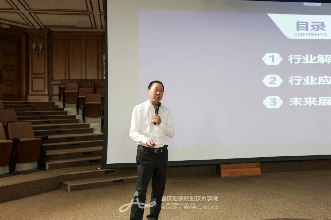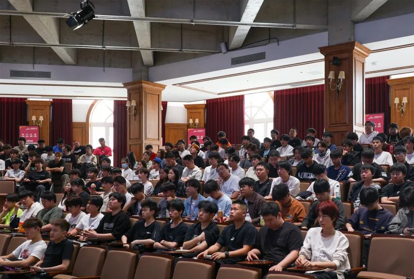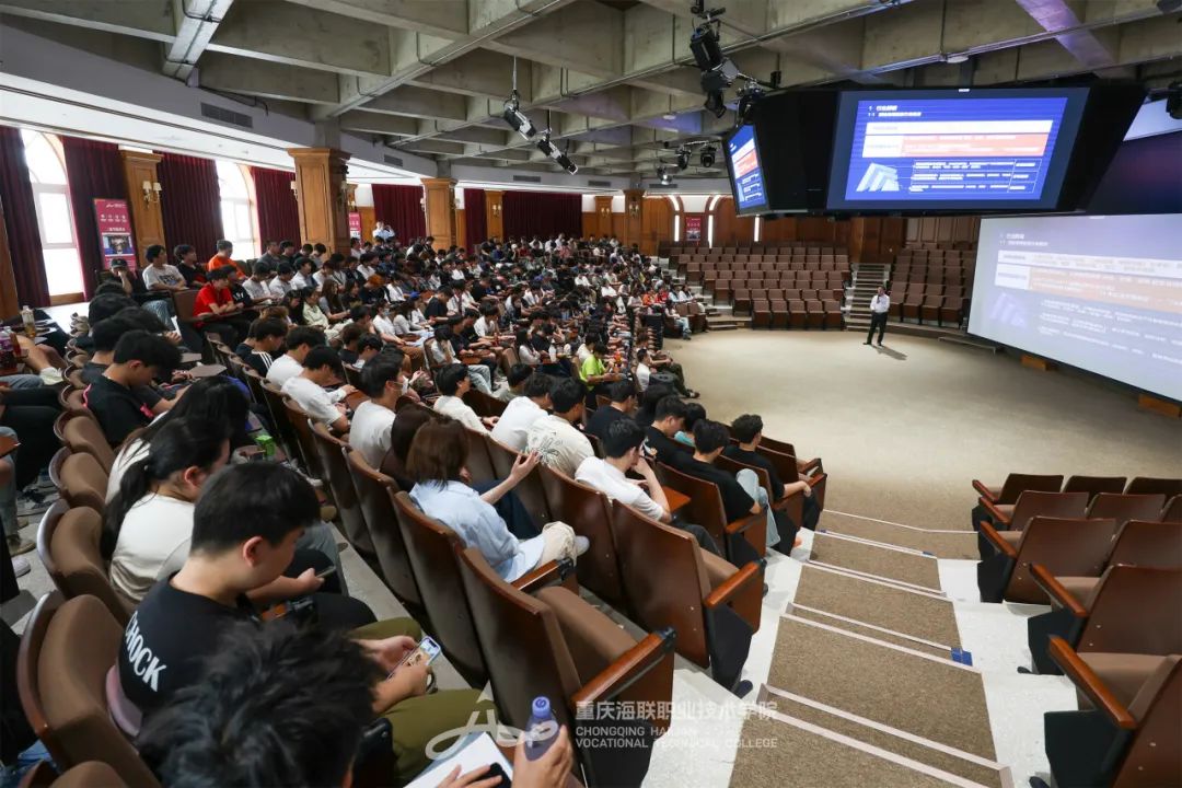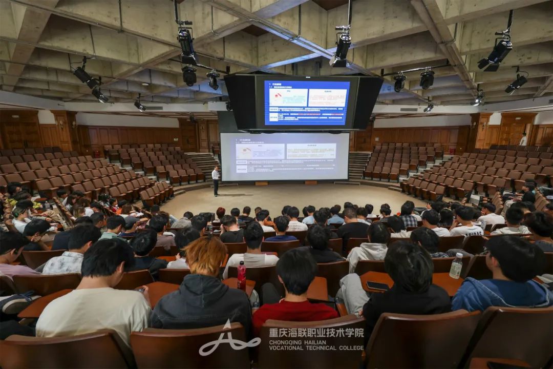 讲座最后,王淮董事长对未来的发展趋势进行了展望,涉及技术融合、人才发展和行业前景等方面。整个讲座过程中,学生们全神贯注,认真聆听。他们时而低头记录重点内容,时而积极参与互动,现场秩序井然,学习氛围浓厚。