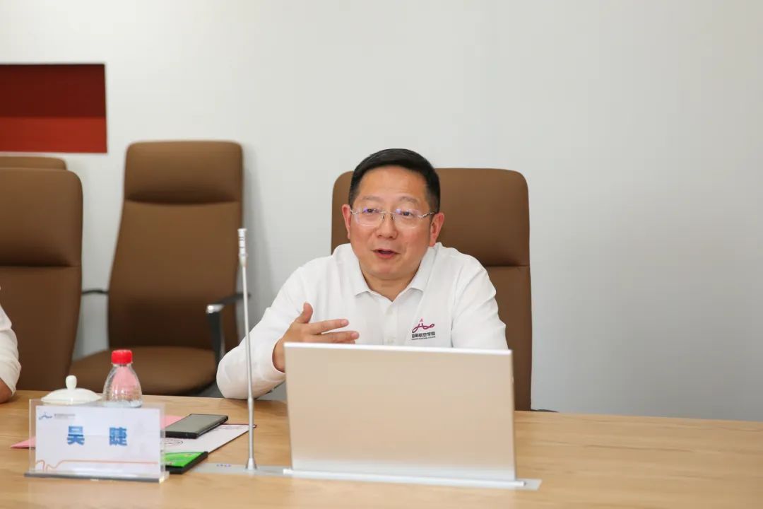 吴睫理事长代表学校对中国民航大学职业技术学院一行的到来表示热烈欢迎。他详细介绍了学校的发展历程、办学特色以及在航空职业教育领域的显著成就。他表示,海联学院作为重庆首家专业航空高职院校,多年来为全国民航行业输送大量专业人才,充分彰显了学校在航空职业教育领域的卓越实力和重要地位。他强调,学校一直秉持开放包容的态度,积极与社会各界探索优势互补、强强联合的合作模式。未来也将持续优化学生的职业发展路径,进一步扩大校园环境设施的建设规划,不断提升学校的整体办学水平和综合实力。他希望,双方以此项目为推动,加大民航领域自主人才培养的探索实践,为我国培育更多符合航空行业发展需求的全方位人才。