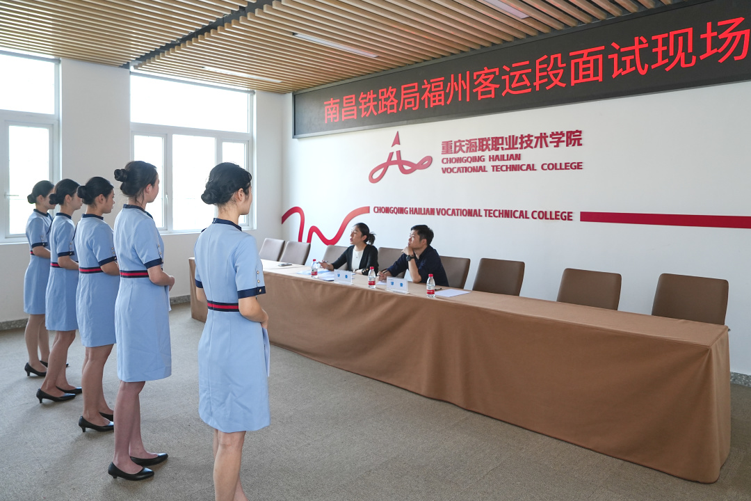 参观结束后,随即开展南昌铁路局福州客运段乘务员招聘面试工作。此次招聘吸引众多买球官网高速铁路客运服务专业学子踊跃报名参与。面试现场秩序井然,同学们提前到达等候区,认真准备,展现出积极向上的精神风貌。