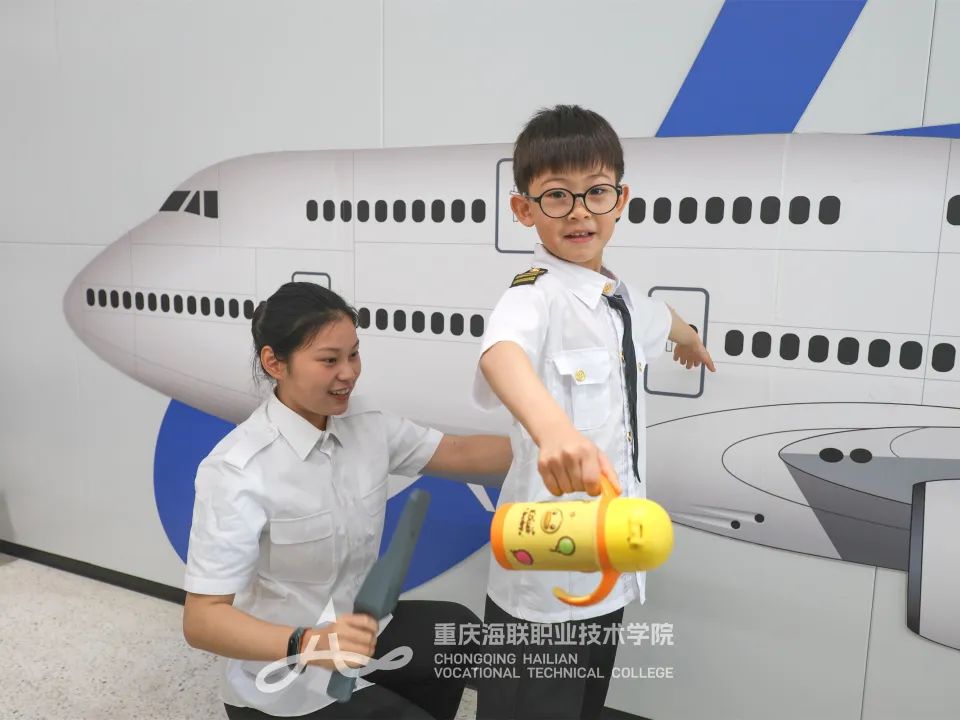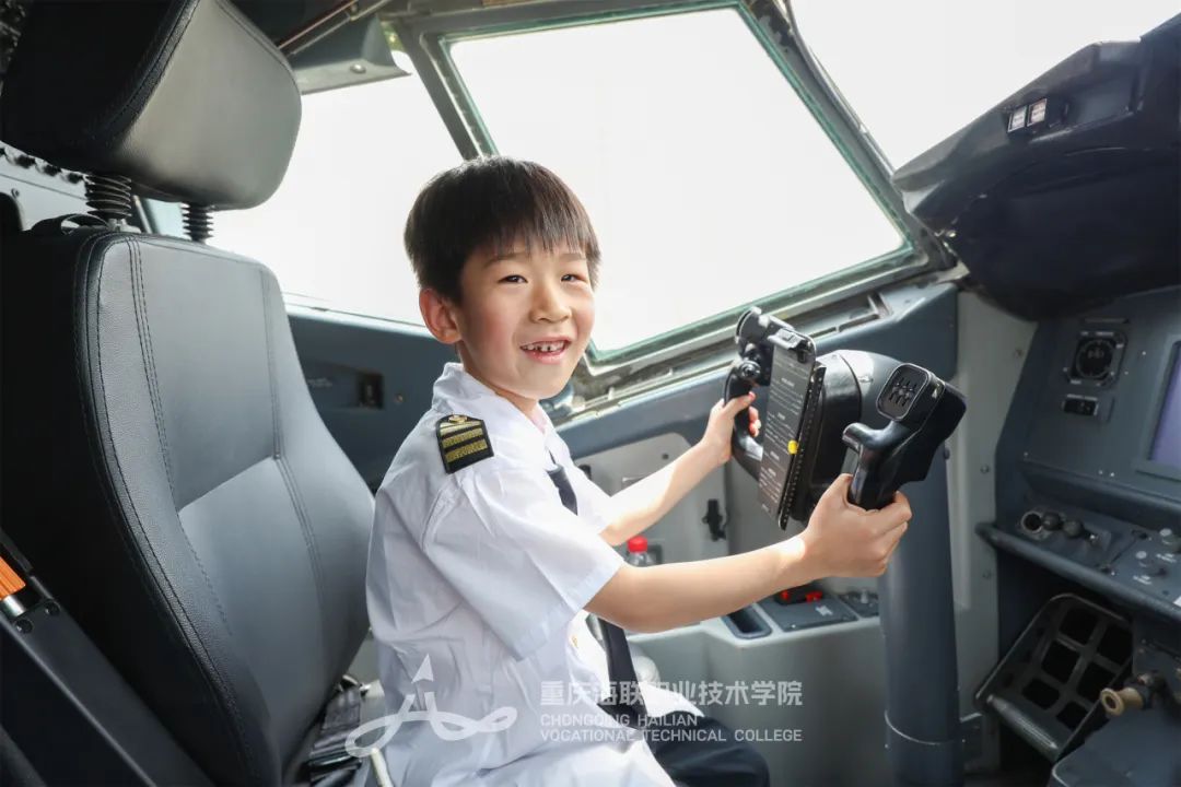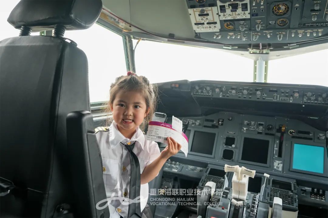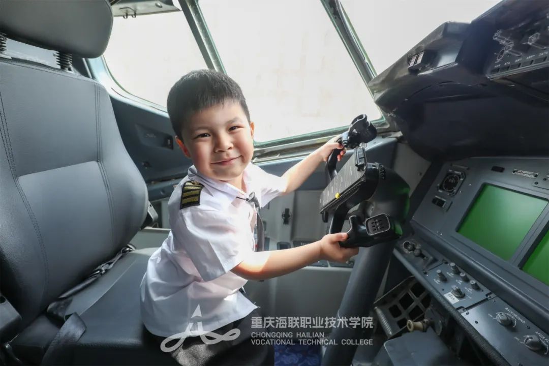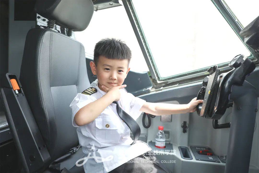在海联学子的带领下,萌娃们登上波音737-700教学飞机,不仅体验到作为旅客的舒适与惬意,还过了一把“小小机长”的瘾。