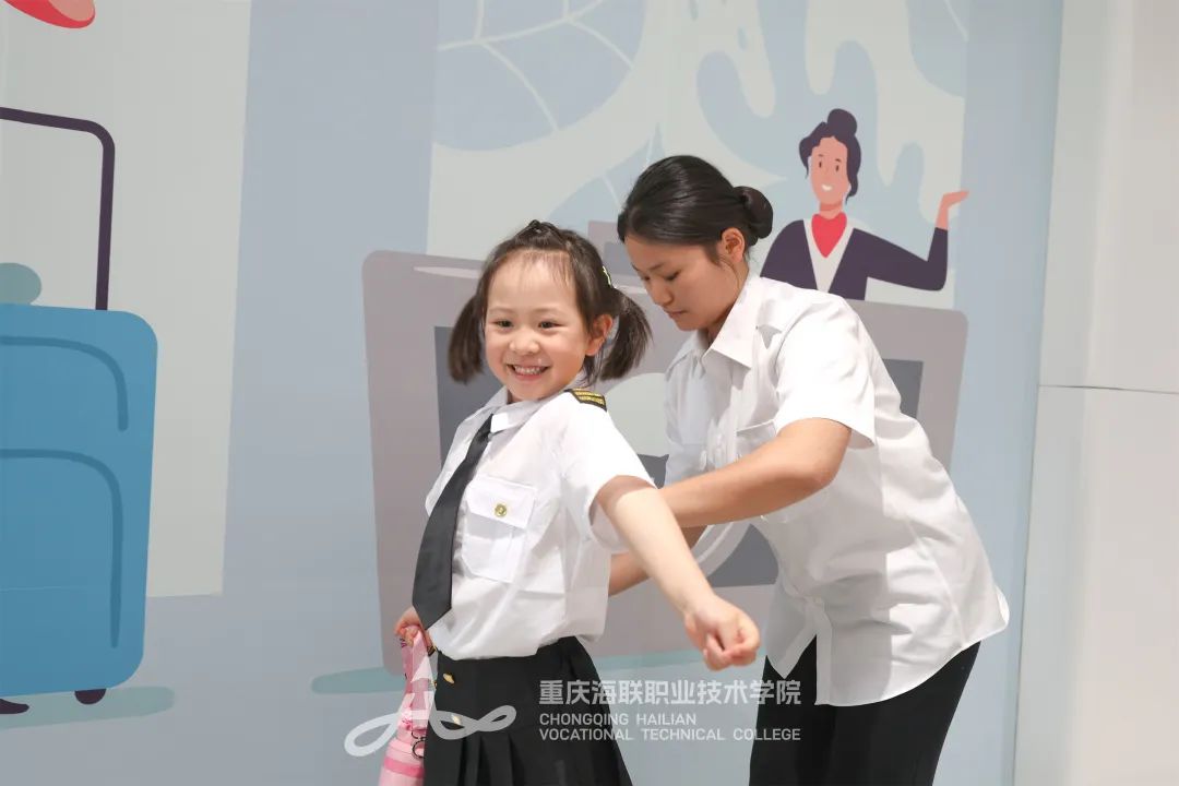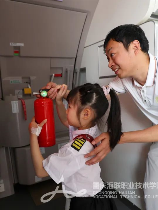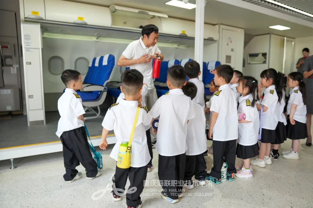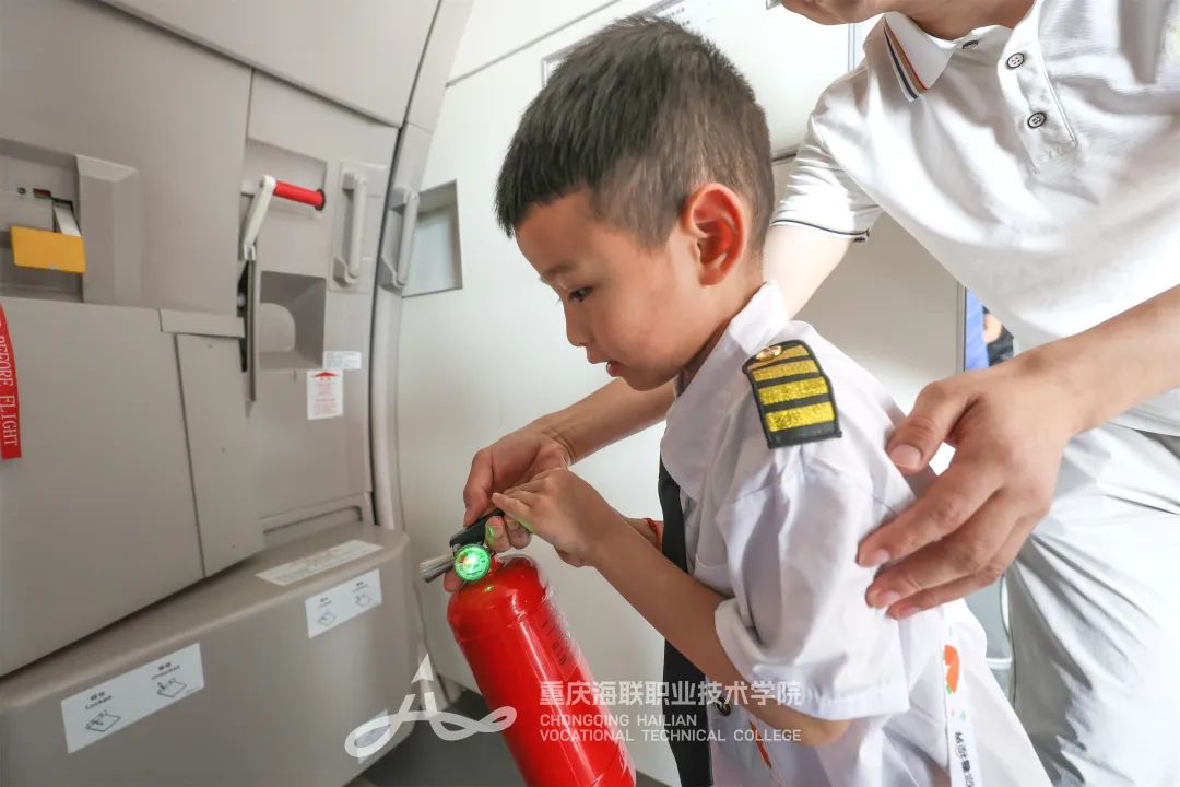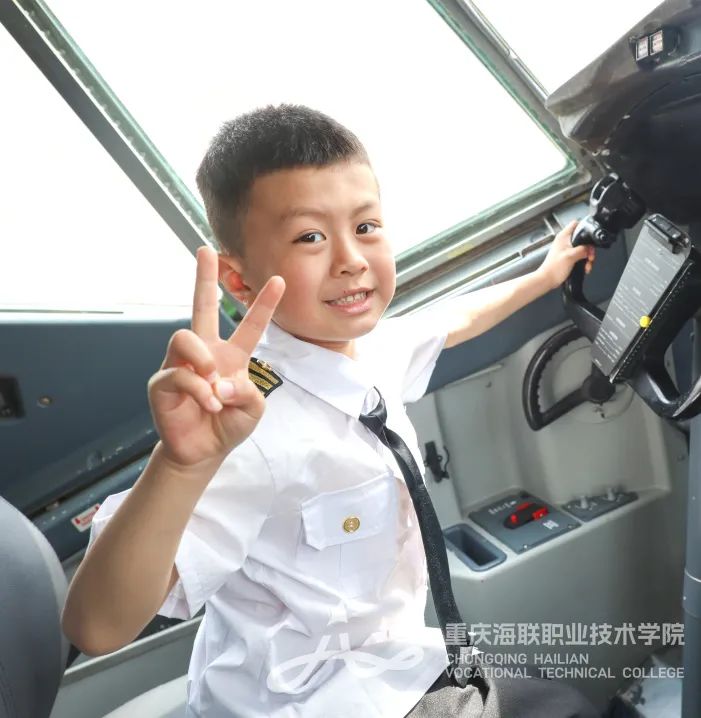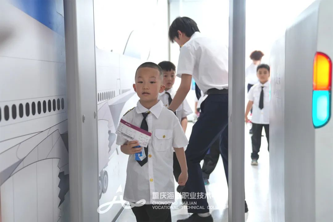 在海联学子的带领下,萌娃们登上波音737-700教学飞机,不仅体验到作为旅客的舒适与惬意,还过了一把“小小机长”的瘾。