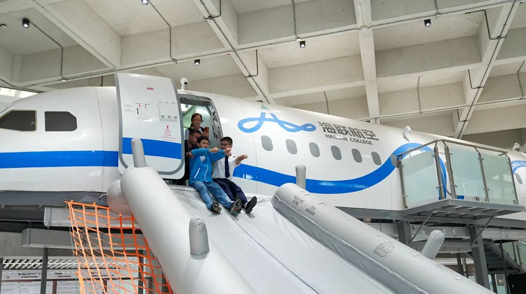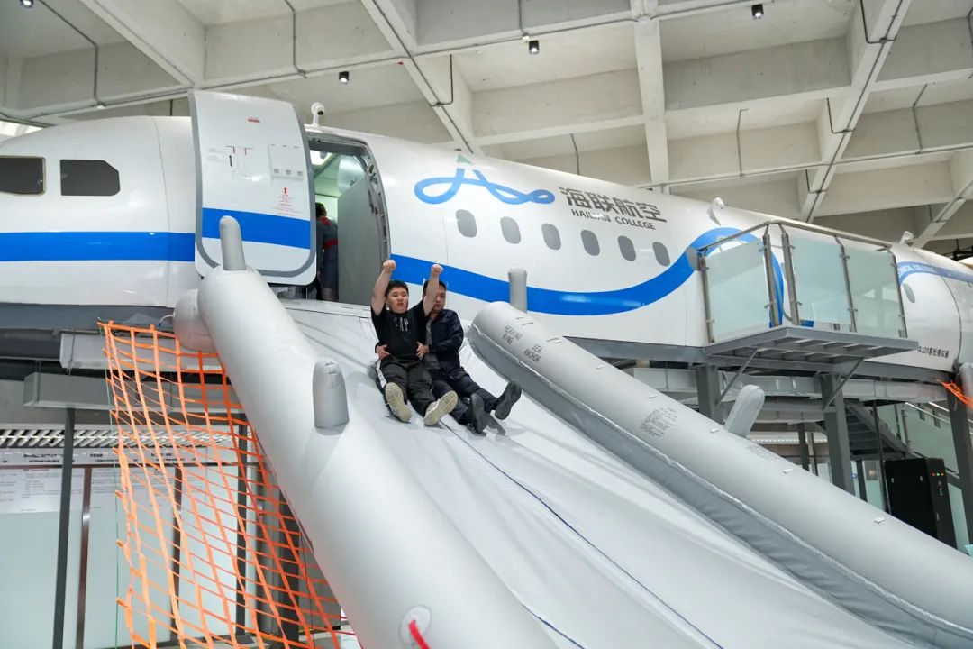 他们走进A320陆地撤离舱,瞬间变身“小小安全员”,在欢声笑语中解锁了紧急撤离的“通关秘籍”,收获了满满的飞行安全知识。