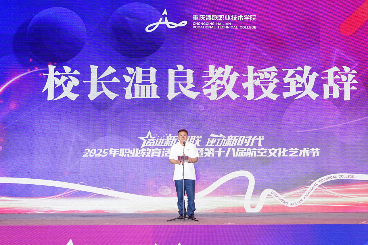 温良校长代表学校,向来自全国各地的校企合作单位、校校合作学校及校友会嘉宾致以热烈欢迎。他表示,航空文化艺术节不仅充分展现学校办学特色,更为学生搭建了职业技能提升的发展平台。他强调,学校将以本次活动为契机,聚焦产业发展、人才培养和职业教育等关键领域,全力推动学校高质量发展。最后,他预祝本次活动圆满成功,期望海联学子能传承并弘扬航空精神,为未来的职业生涯奠定坚实基础。