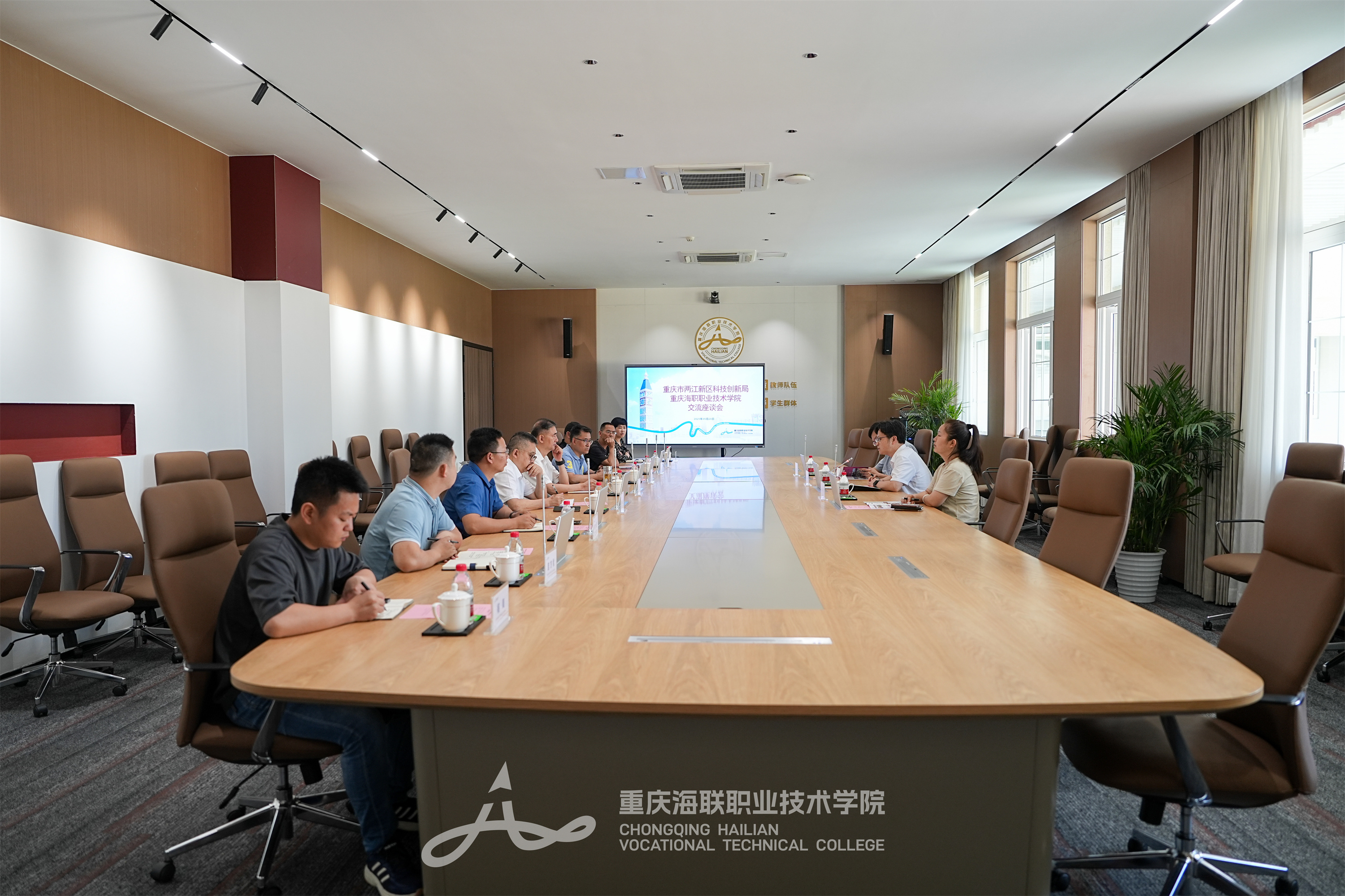 王博坤主任介绍了两江新区科技创新方面的基本情况,重点介绍了两江新区科技创新鼓励政策,表示学院在专业设置上与两江新区产业发展需求高度契合,希望双方在科技创新方面展开深度合作。