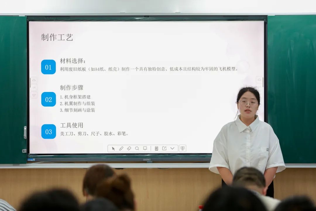 比赛采用PPT汇报+实物展示的立体化呈现形式,参赛选手需在3至5分钟的限时陈述中,通过图文并茂的演示与实物模型操作,系统阐释模型飞机的设计理念、制作工艺、技术参数及创新亮点。评审环节中,评委组围绕创新性、环保性、功能性、工艺精度等维度展开深度质询,并结合现场表现进行量化评分,确保赛事评审的专业性与公正性。