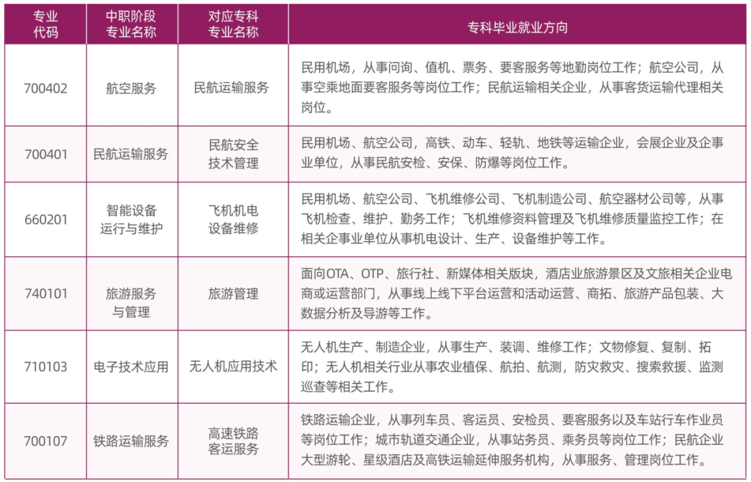 新生入校后实行“班主任负责制”,为每一名学子保驾护航。中职阶段实行文化基础课与专业基础课相结合的方式,实施职业礼仪养成教育,全面提升学生综合素质,注重专业知识和专业技能培养,形成了鲜明的航空职业教育教学特色,为学生的创新创业和职业发展打下了坚实的基础。