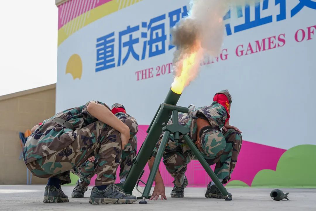 同学们分组进行迫击炮模拟操作训练