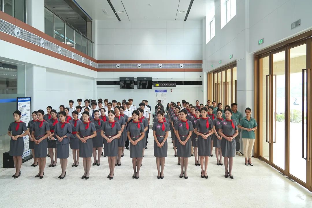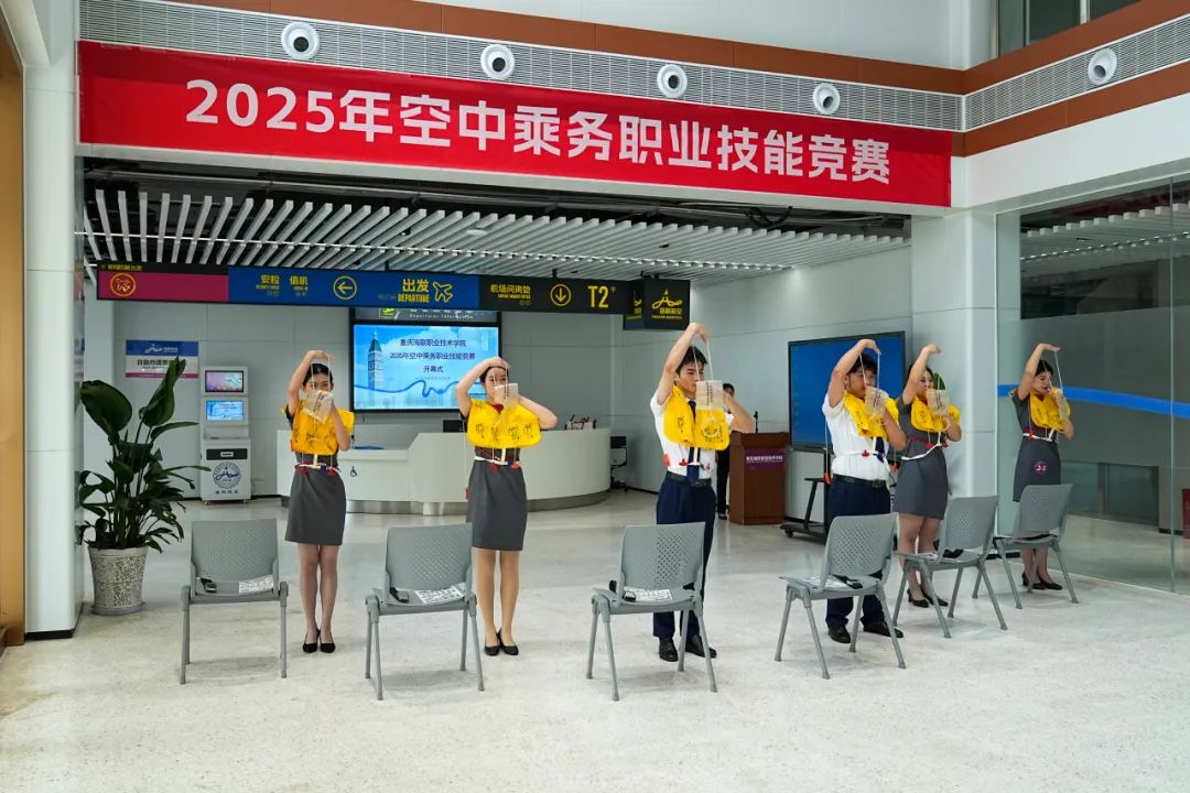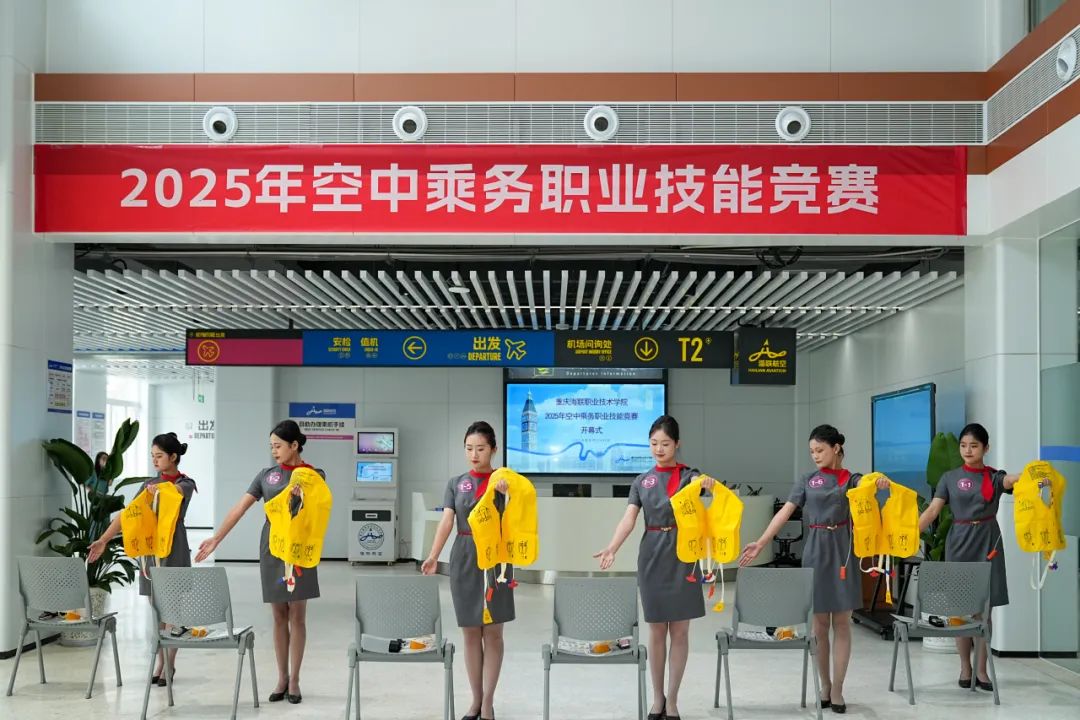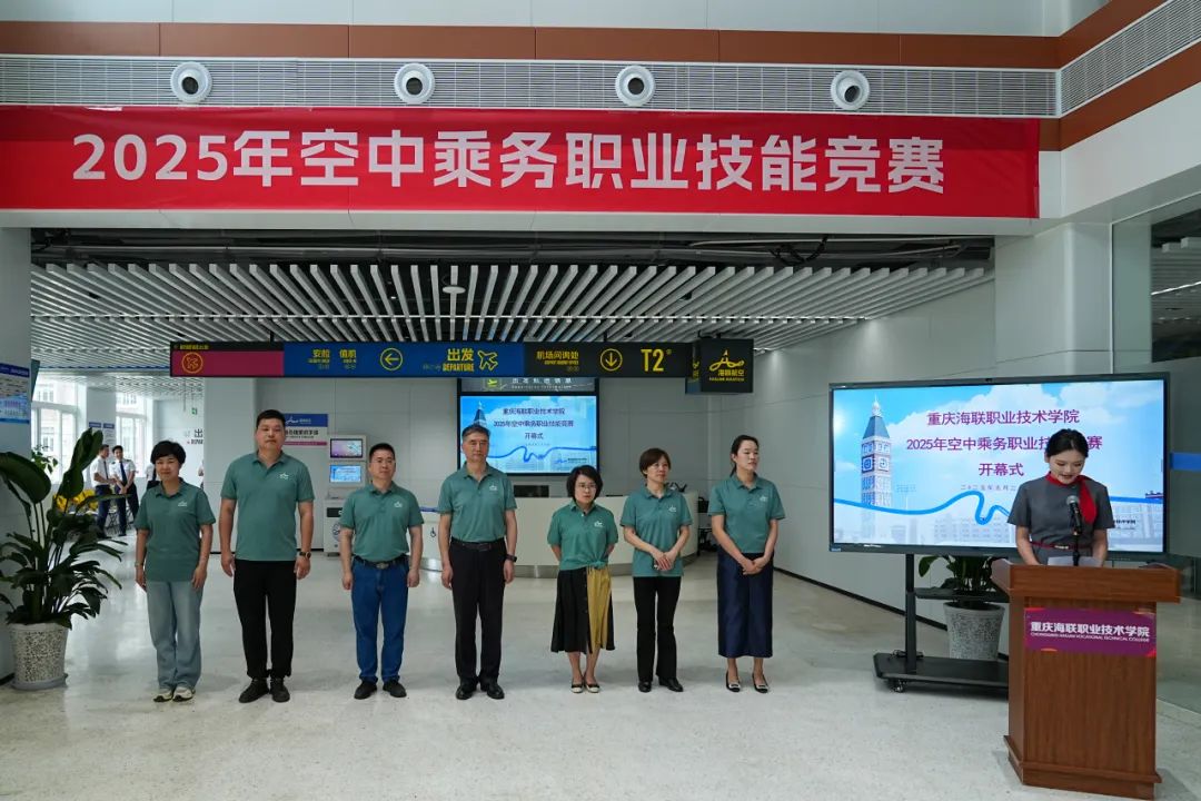 近日,学校在T2实训楼举行2025年空中乘务职业技能竞赛开幕式。学校常务副校长李慧民、校长助理邓斯琼,学生处处长张鹏、教务处副处长胡云华,,空中乘务学院院长陈洁、支部书记刘奕成、副院长牛金鑫出席开幕式,空中乘务教研室全体教师,100余名学生代表参加开幕式。