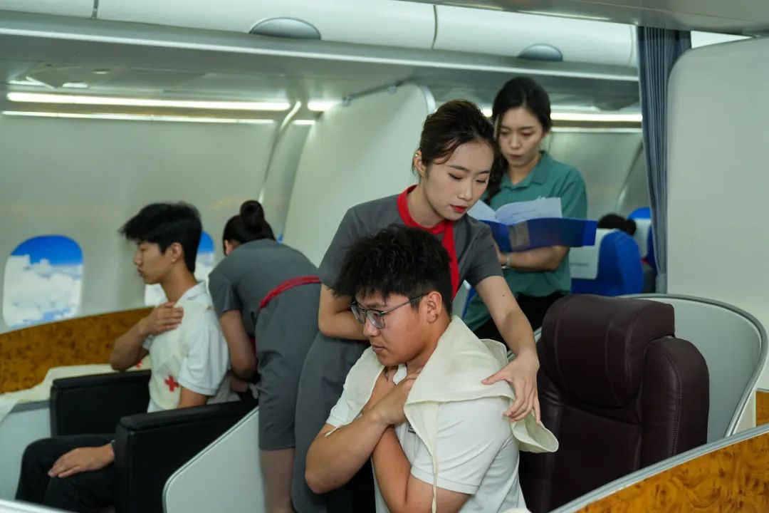 本次大赛以“1+X民航空中服务职业技能等级标准”为主要比赛内容,考核基于典型工作任务的客舱安全与服务核心技能。同学们围绕客舱急救、客舱中英文广播词朗读、机上应急设备讲解、客舱安全演示四大核心技能展开角逐。