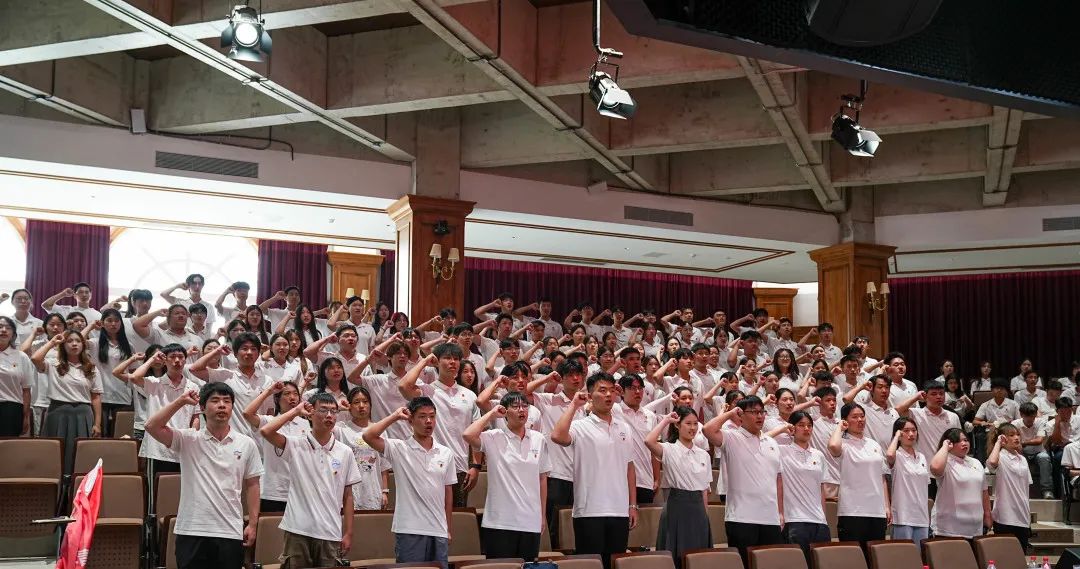 “我志愿加入中国共产主义青年团……”在开班仪式上,全体青马学员重温入团誓词。他们高举右拳,声音洪亮,誓言在报告厅内久久回荡。