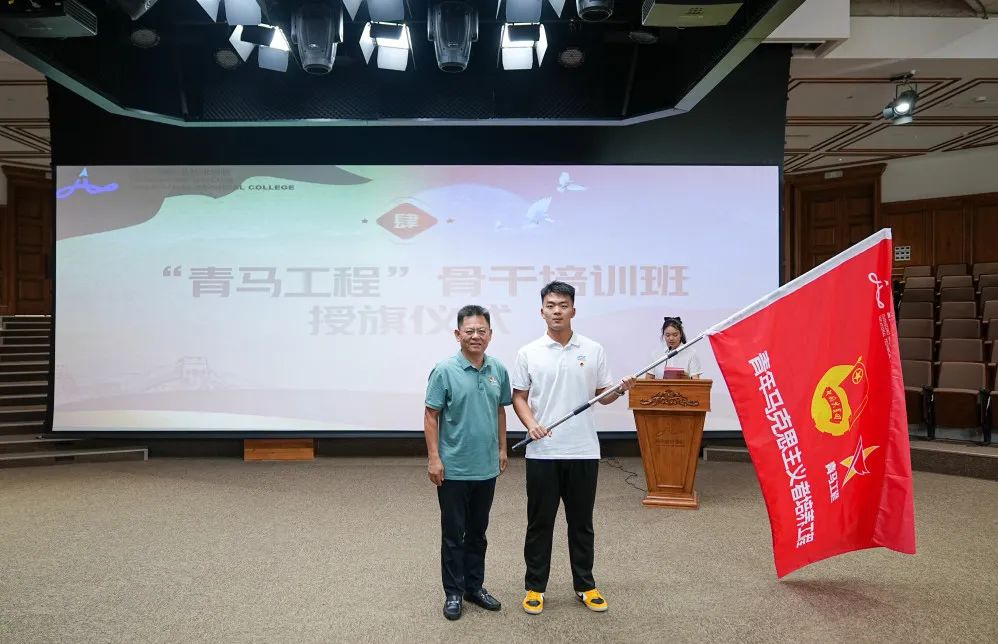 党委书记郭增琦为培训班授予象征红色信仰的“青马工程”旗帜。
