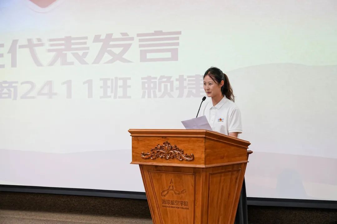 赖捷同学代表“青马工程”学员发言。她表示,能够加入“青马工程”培训班,是荣誉,更是责任。她将珍惜这次难得的学习机会,认真学习马克思主义理论,不断提升自身的思想政治素养和综合素质。同时,她号召全体学员以实际行动践行青年马克思主义者的使命,积极投身到学校的各项建设中,为学校的发展贡献自己的力量。