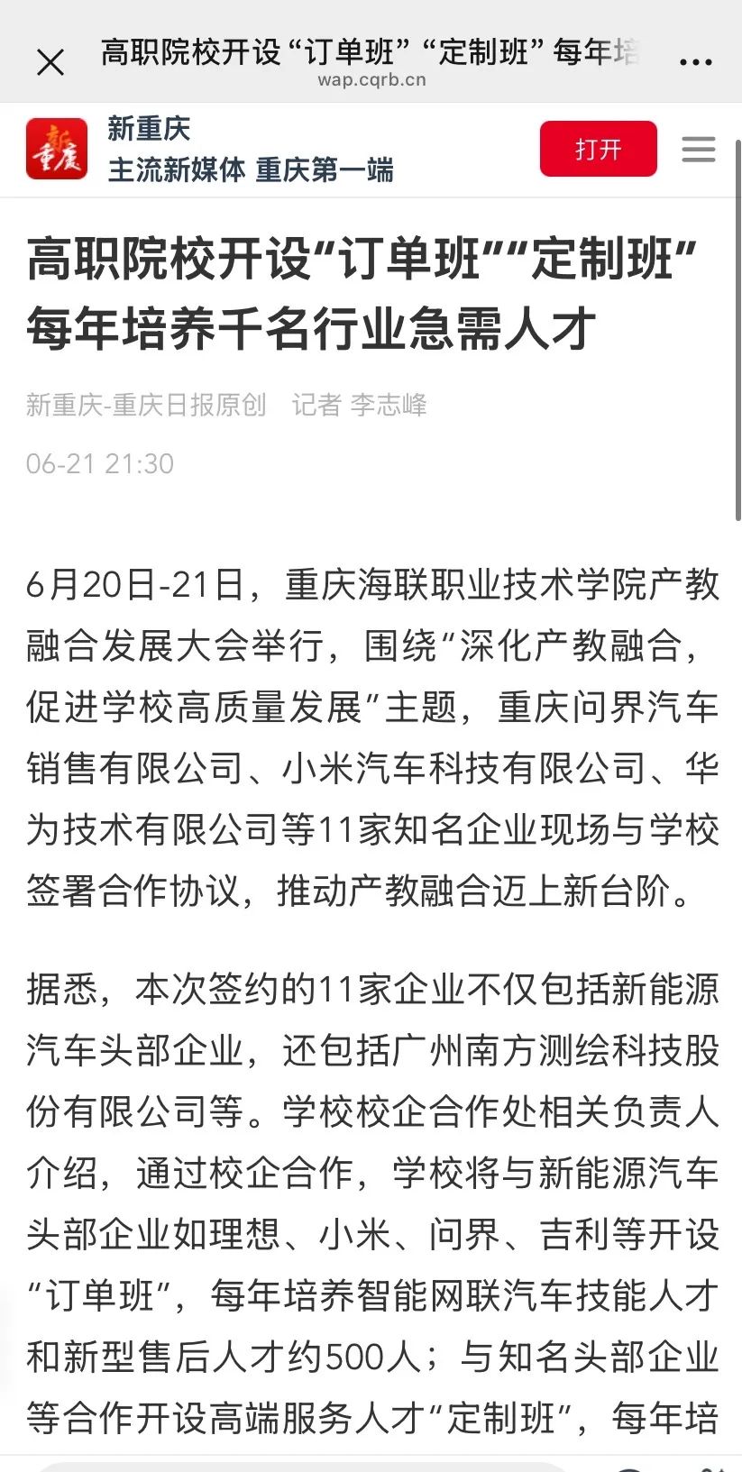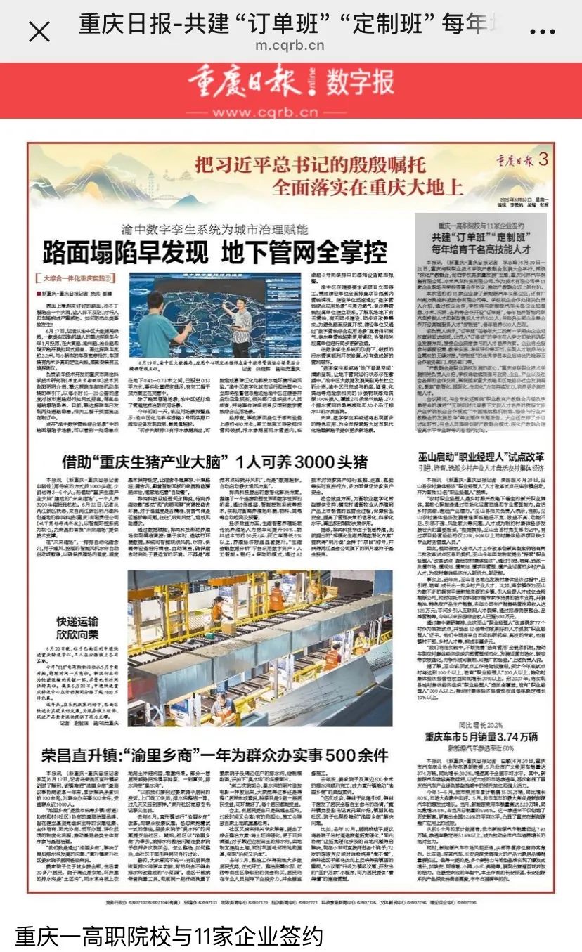 【重庆日报-数字报】重庆一高职院校与11家企业签约