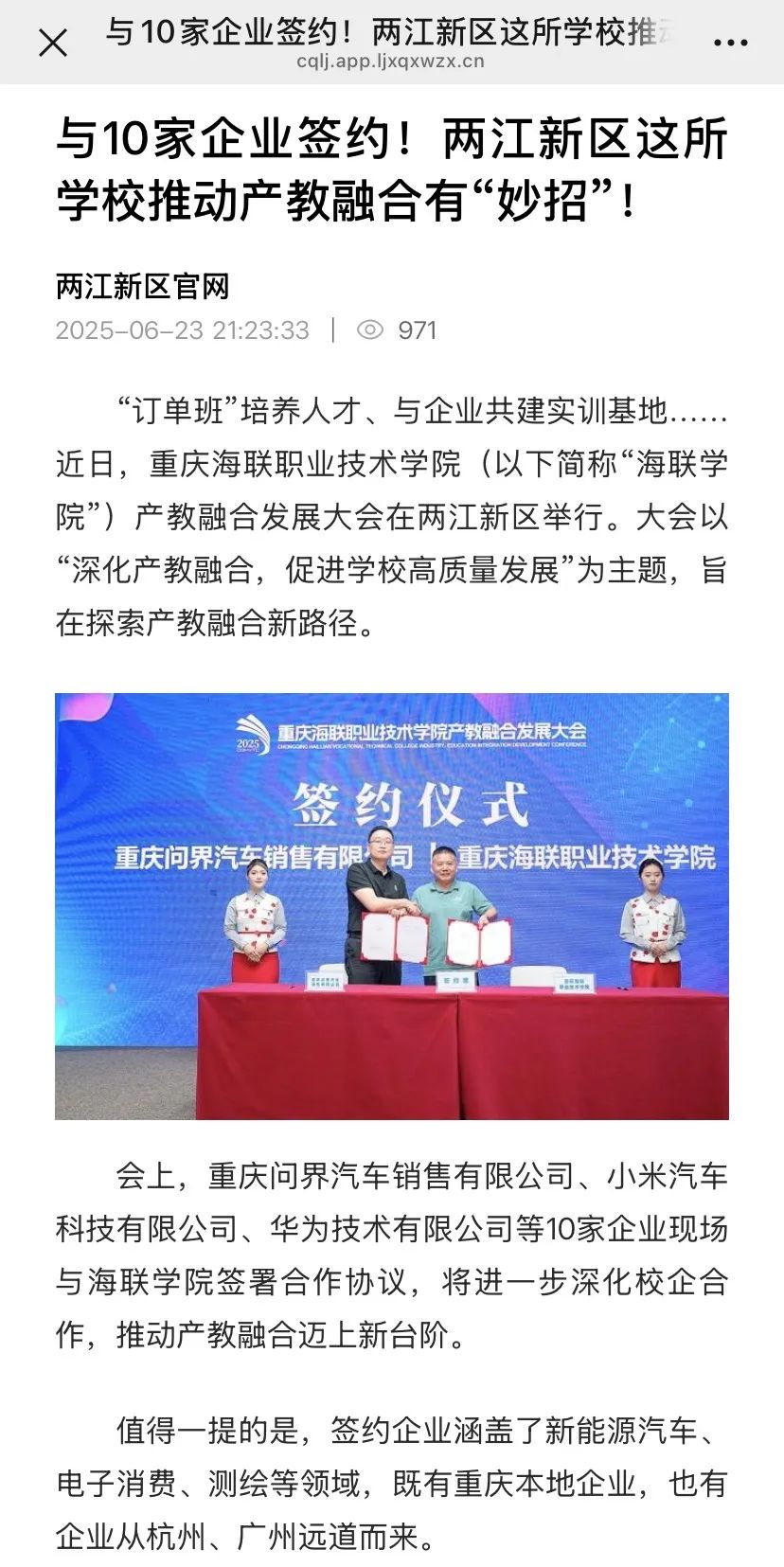 【两江新区官网】与10家企业签约!两江新区这所学校推动产教融合有“妙招”!