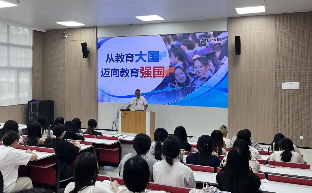 课堂上,郭书记以“教育强国建设为何势在必行?”发问,带领学生回顾我国教育事业从艰难起步到蓬勃发展的历程。他指出,教育关乎国家兴衰,党和国家始终将其摆在优先发展位置,如今我国已建成世界最大规模教育体系,正全力迈向教育强国。