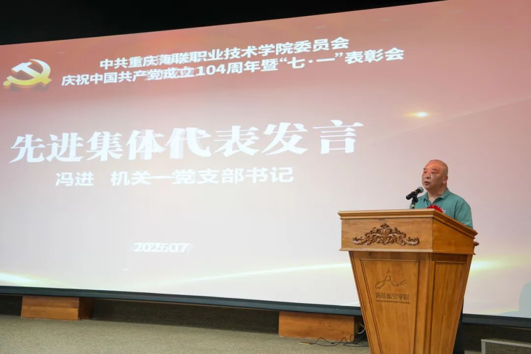 机关一党支部书记冯进代表先进集体发言。他指出,这份荣誉得益于学校党委和行政的信任,以及兄弟支部的有力支持。他介绍了支部在党建引领下,团结带领党员和师生攻坚克难、创新发展的经验和成果。他表示,过去一年里,支部着重加强了政治理论学习,大力弘扬乐观、奉献和坚韧不拔的精神。支部成员将所学知识融入实践,以党员的高标准严格要求自己,以积极态度克服挑战,为学校的卓越发展不懈努力。