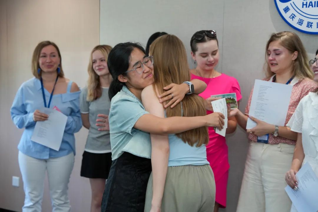 仪式最后,俄罗斯学员们演唱了中华经典歌曲,赢得阵阵掌声。中俄师生相互拥抱,现场气氛温馨友好。