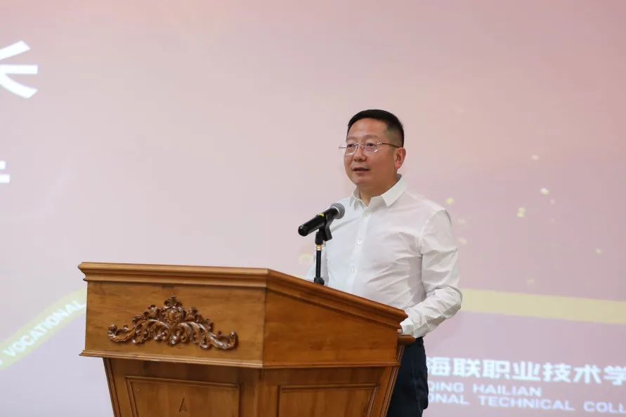 吴睫理事长代表董事会致感谢辞,向温良教授致以崇高的敬意与诚挚的谢意。他指出,在温良教授主持海联工作的岁月里,以教育家的情怀、战略家的远见、实干家的担当,为学校改革发展夯基垒台、立柱架梁,并深情感慨“还好有你”。同时,向新任校长李国教授表示祝贺和殷切期望。