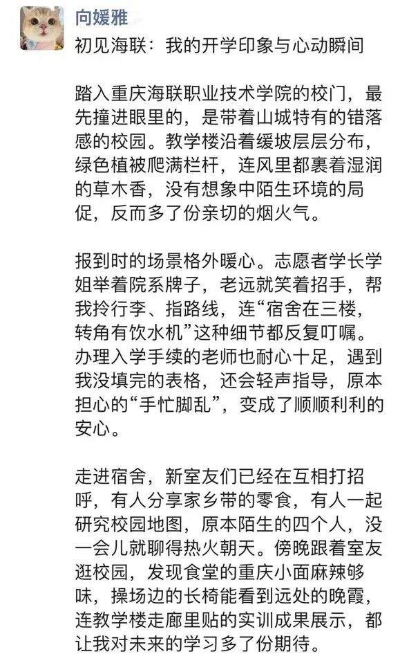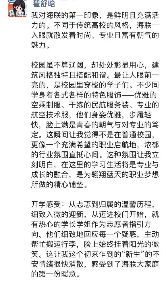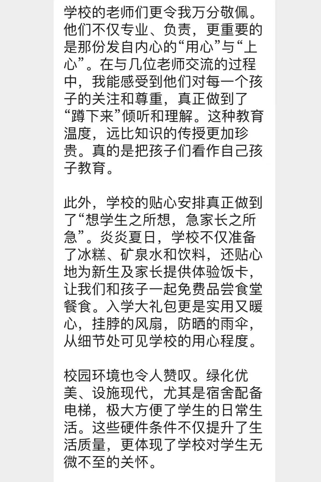 字里行间满是对学校的认可与夸赞