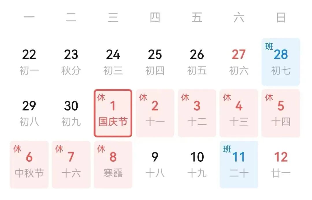 国庆、中秋假期临近