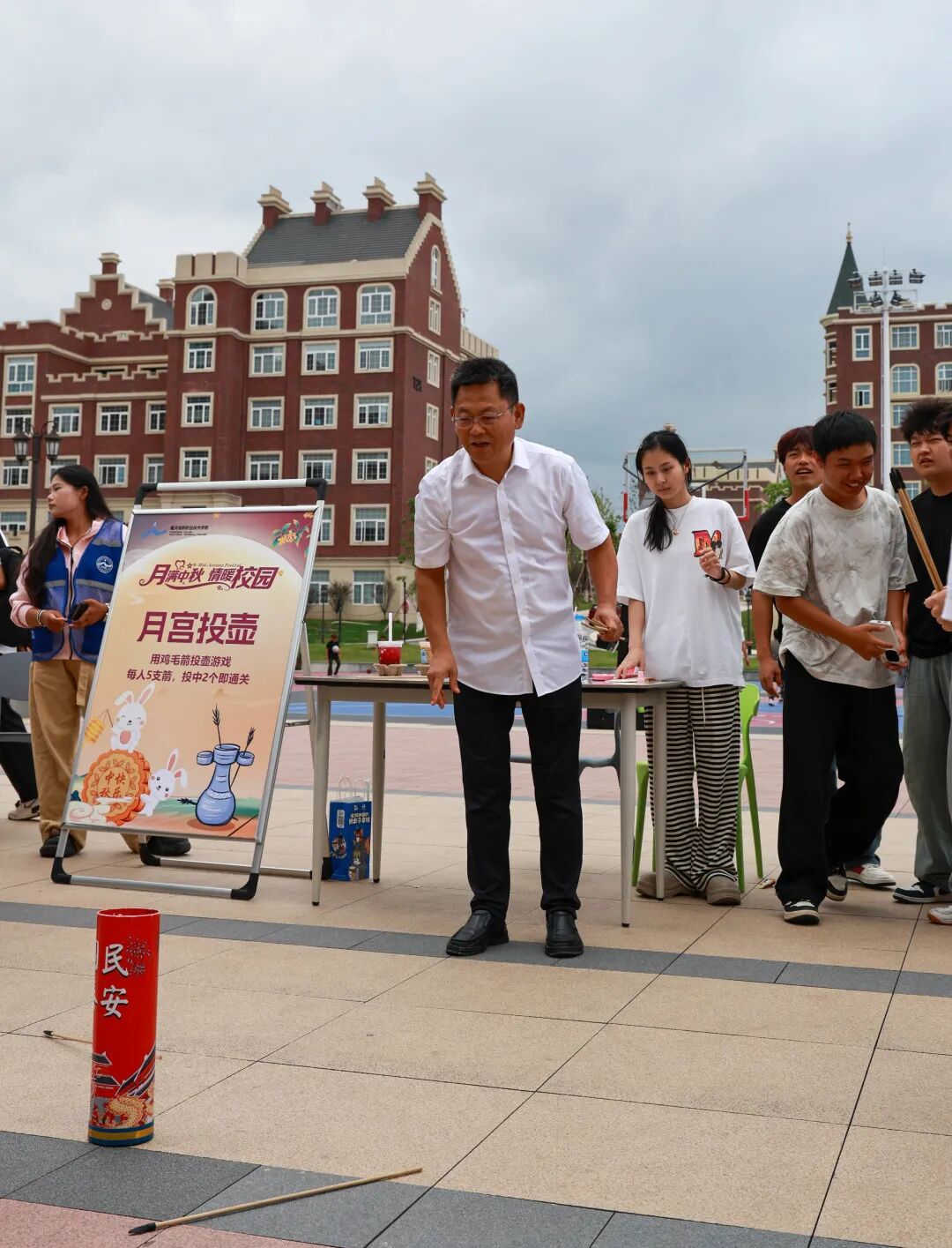 月宫投壶、玉兔套圈、仙人吹气、海底捞月、猜灯谜、古风变装、心语月愿七大趣味项目依次排开,每个摊位前都围满了跃跃欲试的学子,欢声笑语此起彼伏,成为校园里最亮眼的风景线。