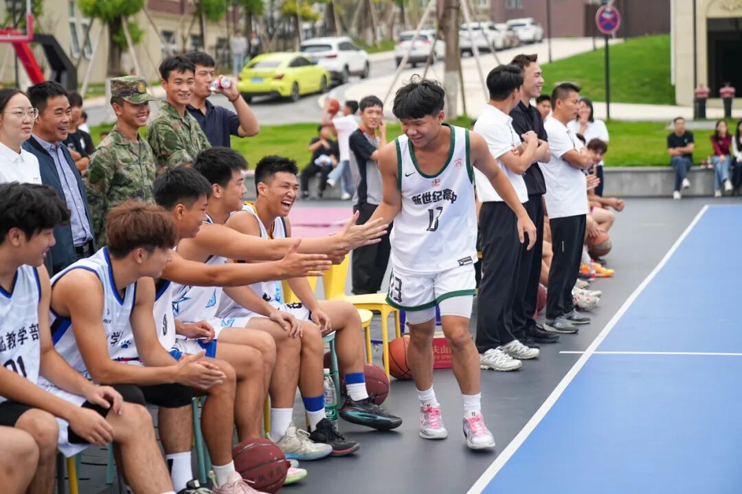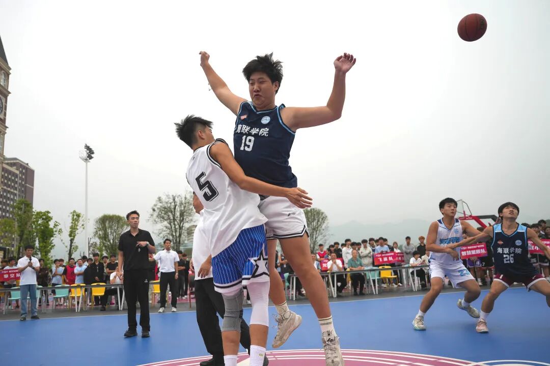 赛场上人声鼎沸,加油声、呐喊声让赛场不断升温,欢呼声让球员精神抖擞,各参赛队员意气风发,毫不示弱,篮球在空中划出完美弧线。