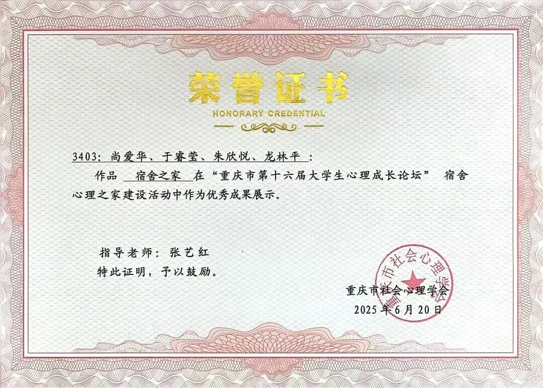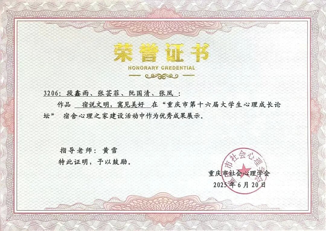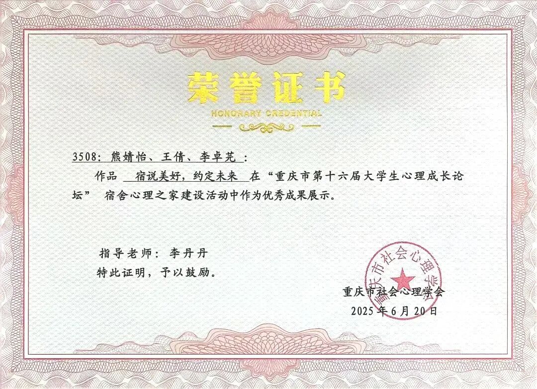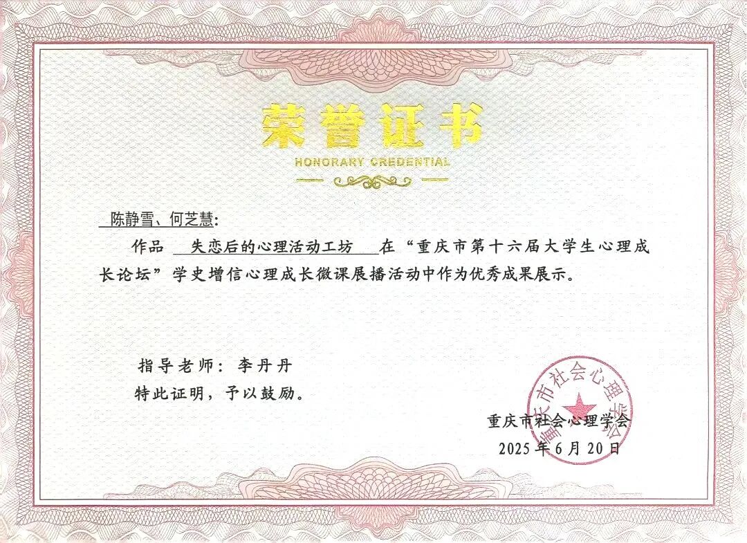 在重庆市第十六届大学生心理成长论坛评选中,买球官网师生积极参与,7项作品在心理健康服务能力、学史增信心理成长微课、宿舍心理之家建设三个类别中获评优秀成果奖。