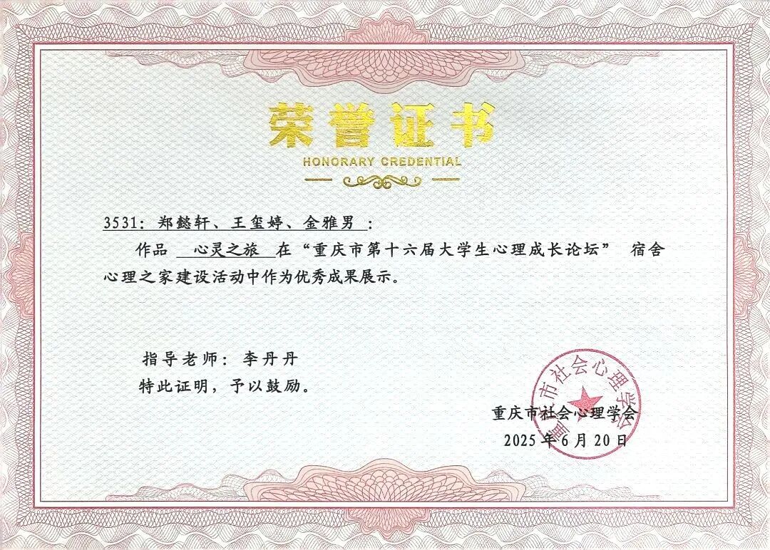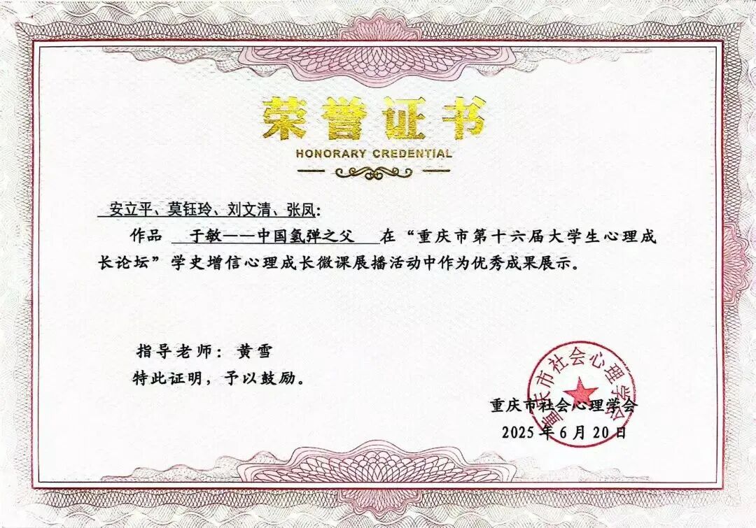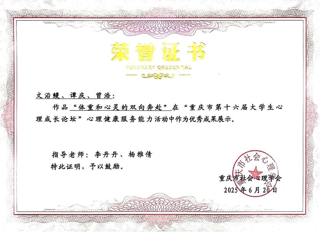 本届论坛以“德心共育 互助成长”为主题,由重庆市社会心理学会主办。自启动以来,买球官网积极响应教育部《全面加强和改进新时代学生心理健康工作专项行动计划(2023-2025年)》的要求,精心组织师生参与创作。从方案策划到作品打磨,从理论探索到实践创新,团队成员以扎实的专业功底和创新思维,将心理健康教育成果转化为富有感染力的优秀作品,最终在全市众多高校中崭露头角。这份亮眼的成绩单,是买球官网深耕心理育人工作的生动见证。