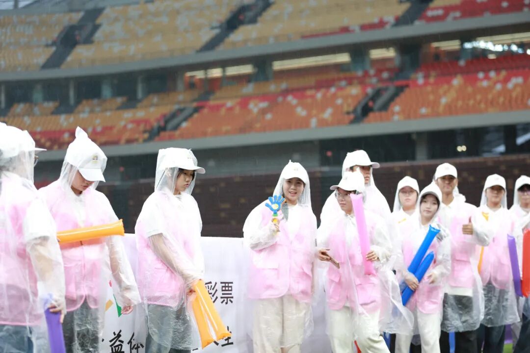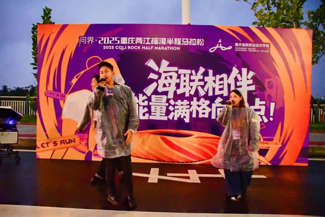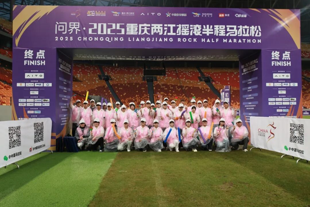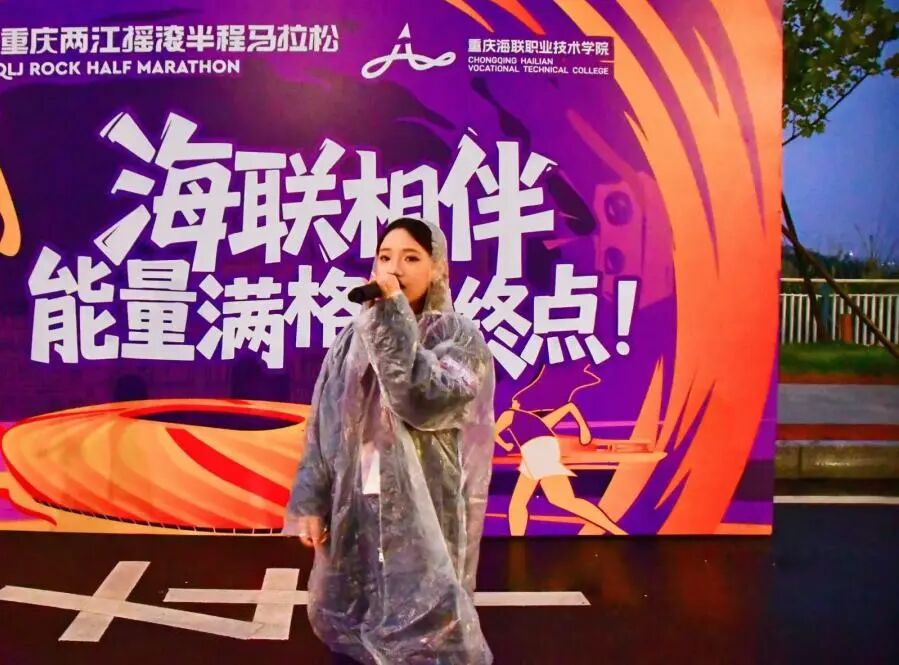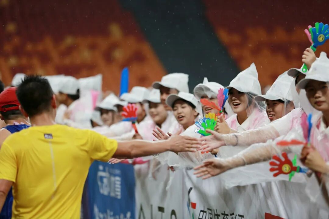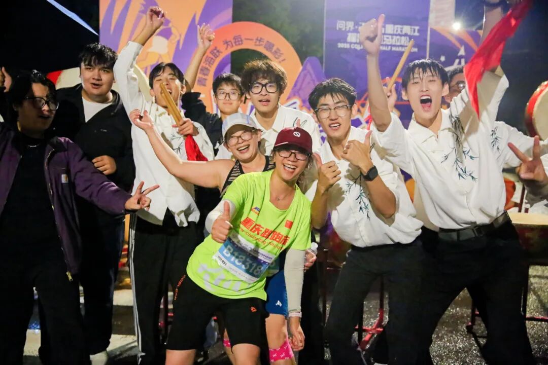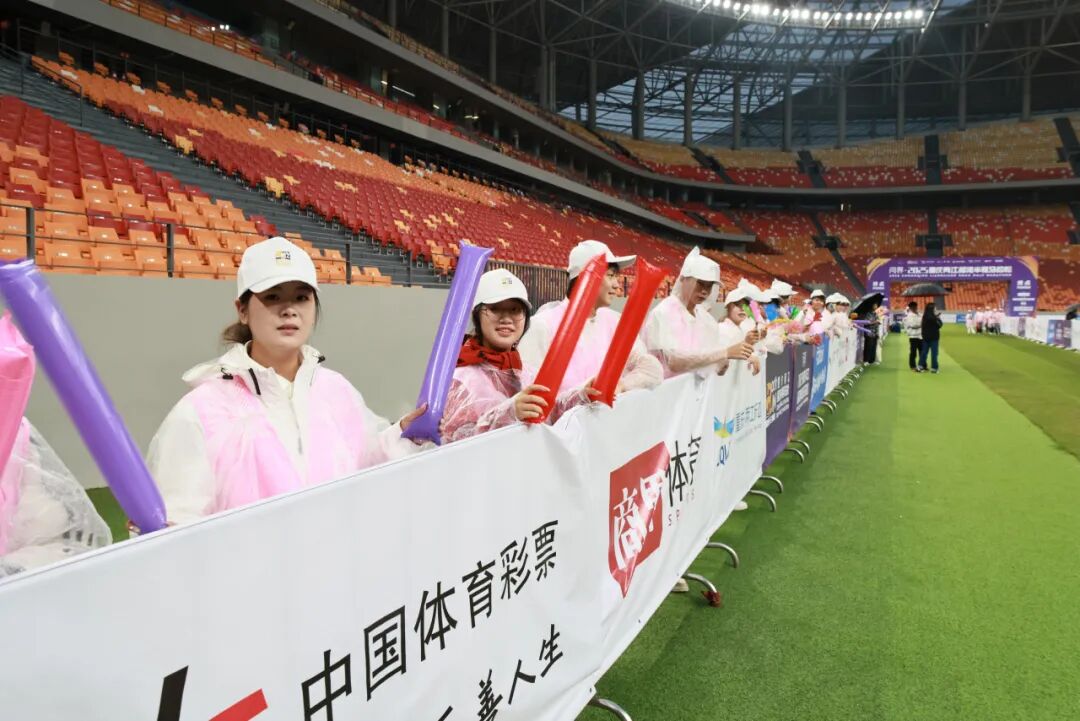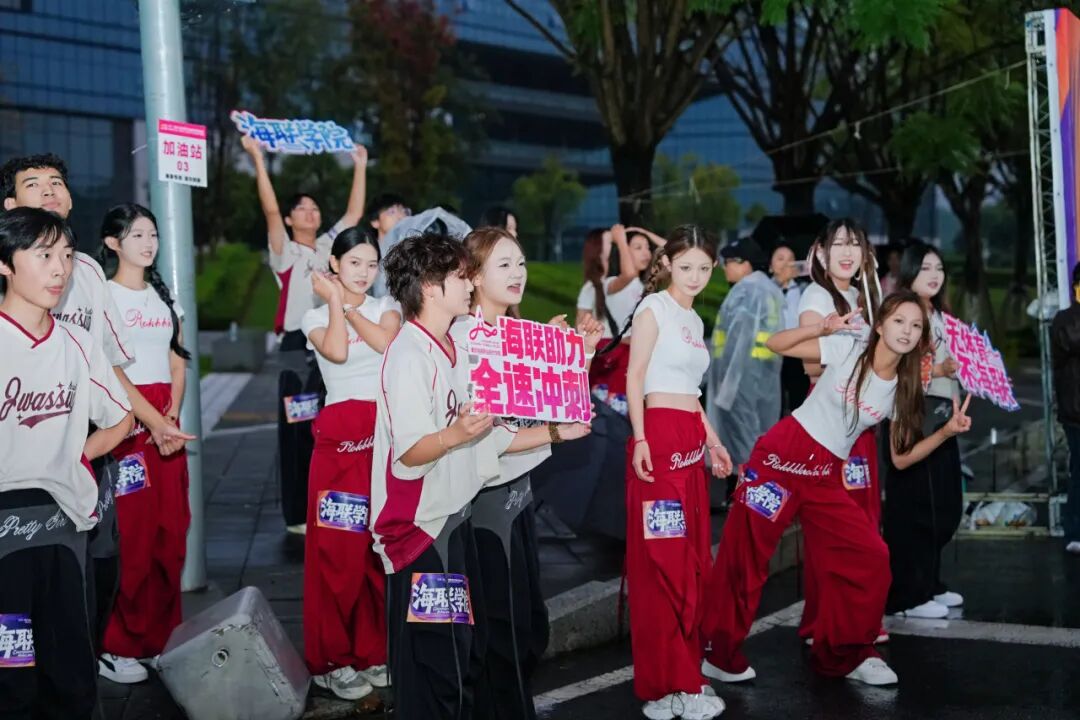 整齐嘹亮的歌声响彻赛道,引发全场共鸣