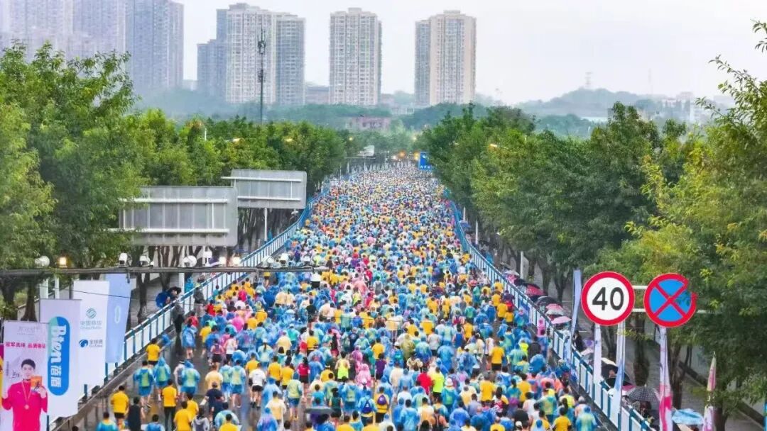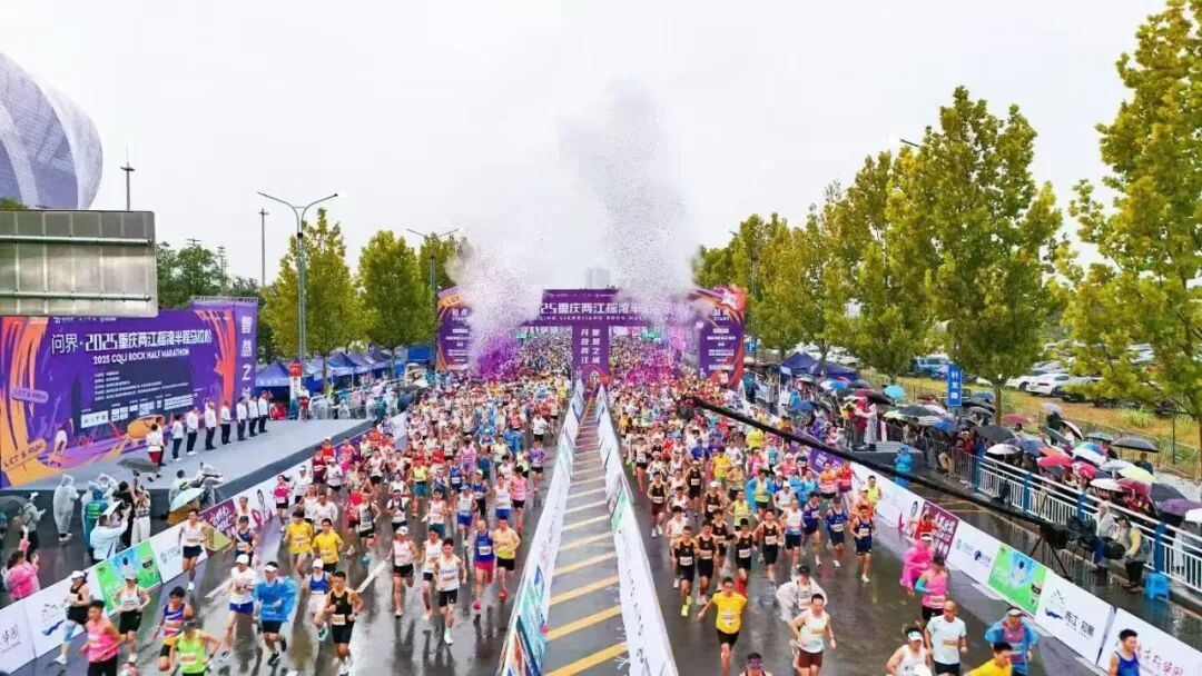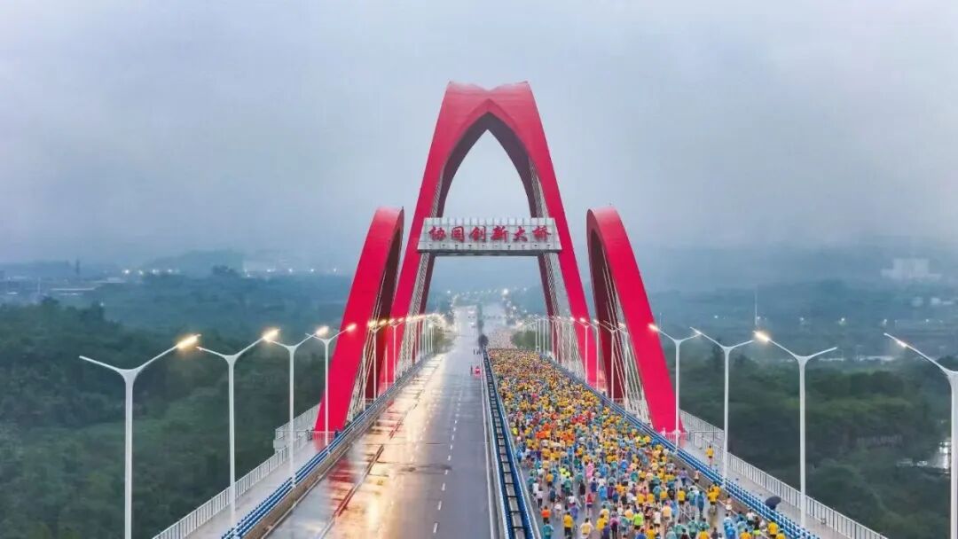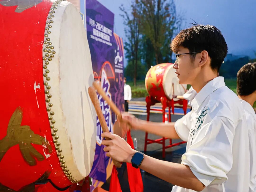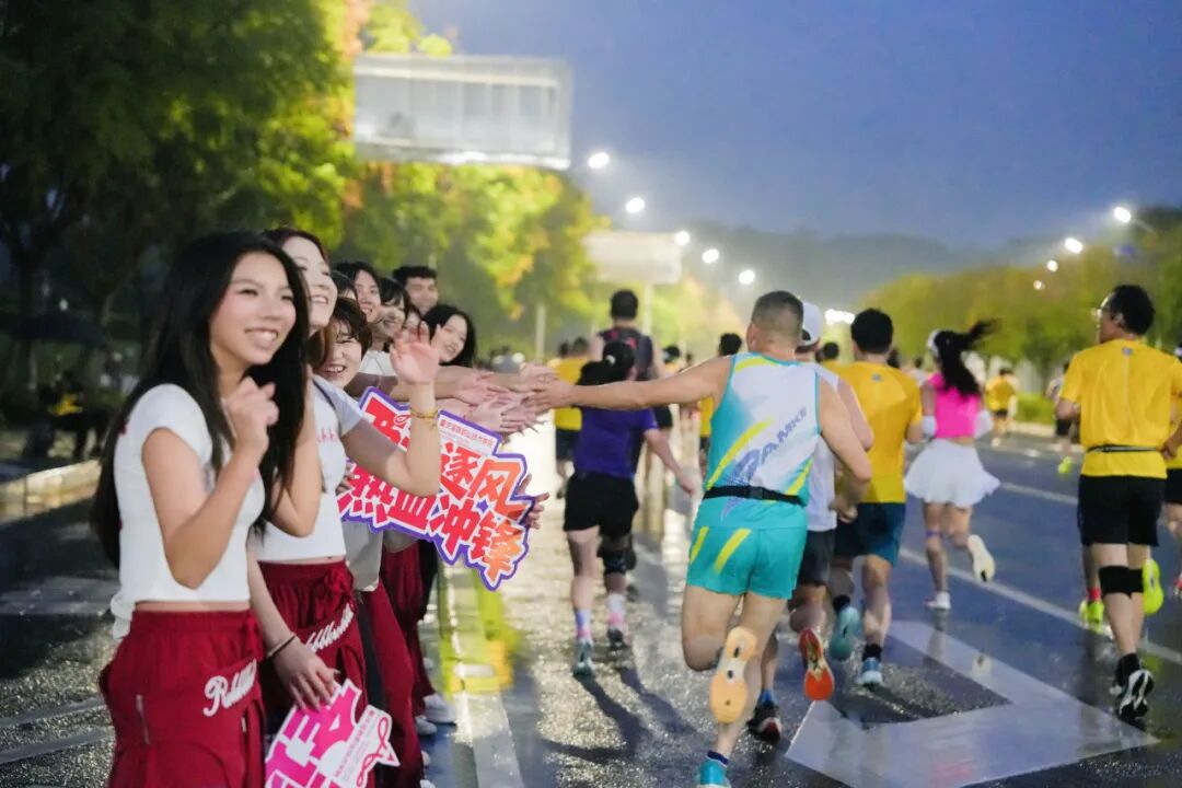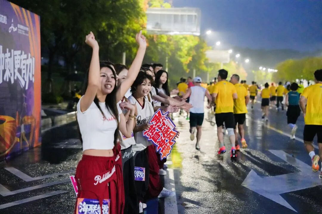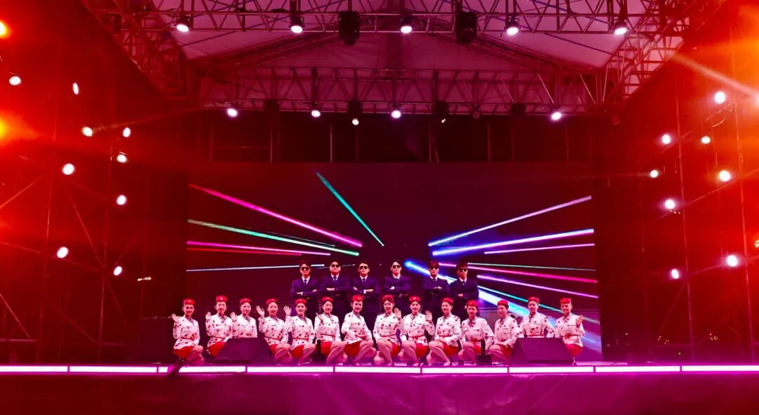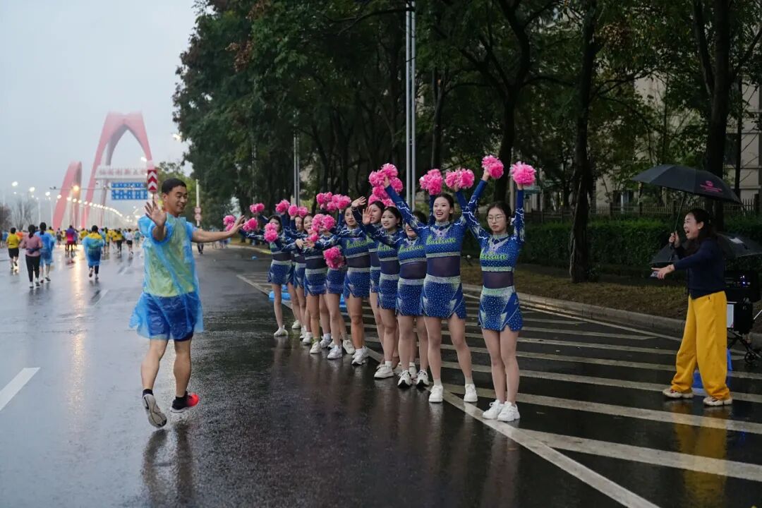 整齐嘹亮的歌声响彻赛道,引发全场共鸣